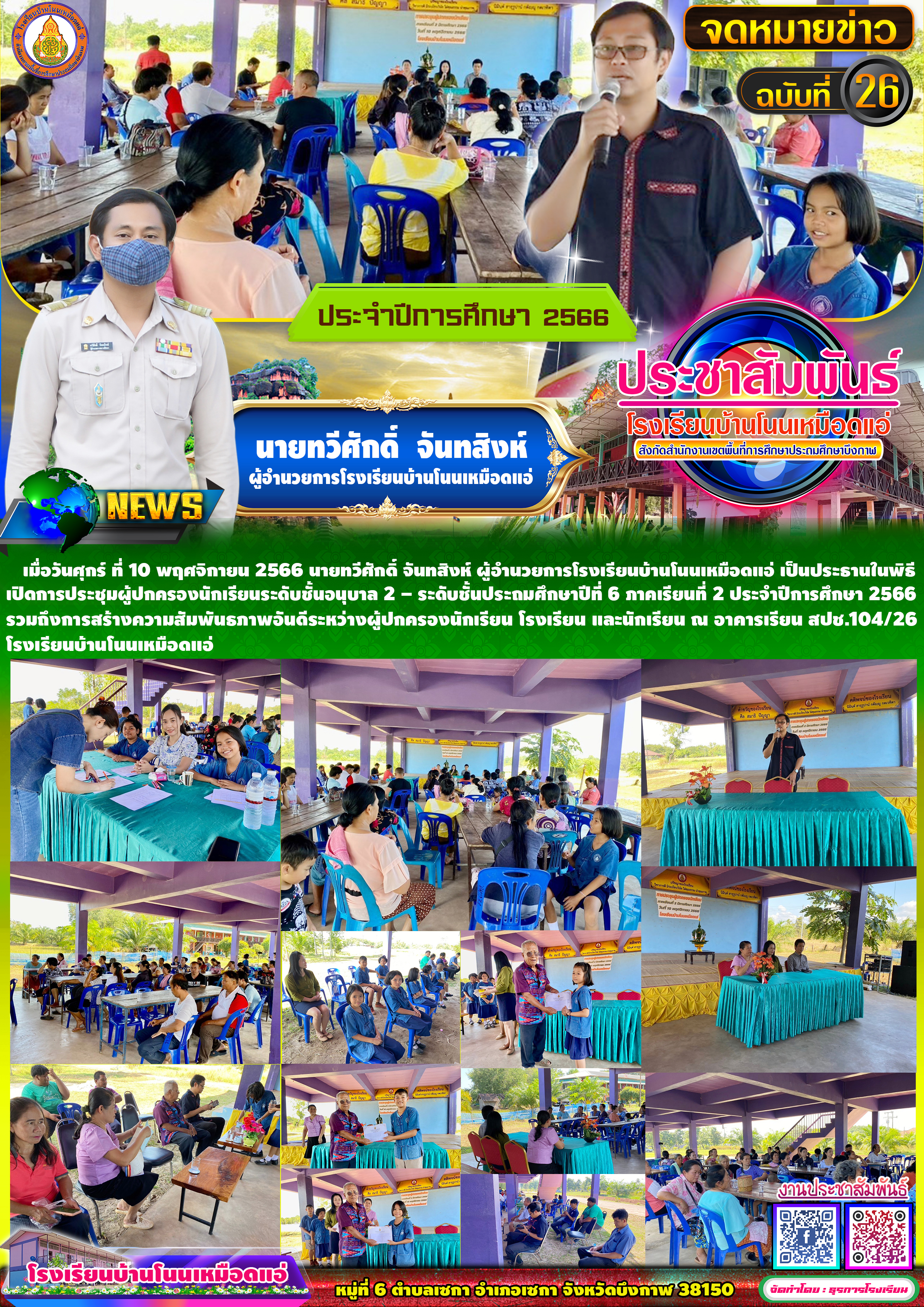 โรงเรียนบ้านโนนเหมือดแอ่ ขอประชาสัมพันธ์จดหมายข่าว ฉบับที่ 26 ปีการศึกษา 2566 การประชุมผู้ปกครองนักเรียน ภาคเรียนที่ 2 ปีการศึกษา 2566