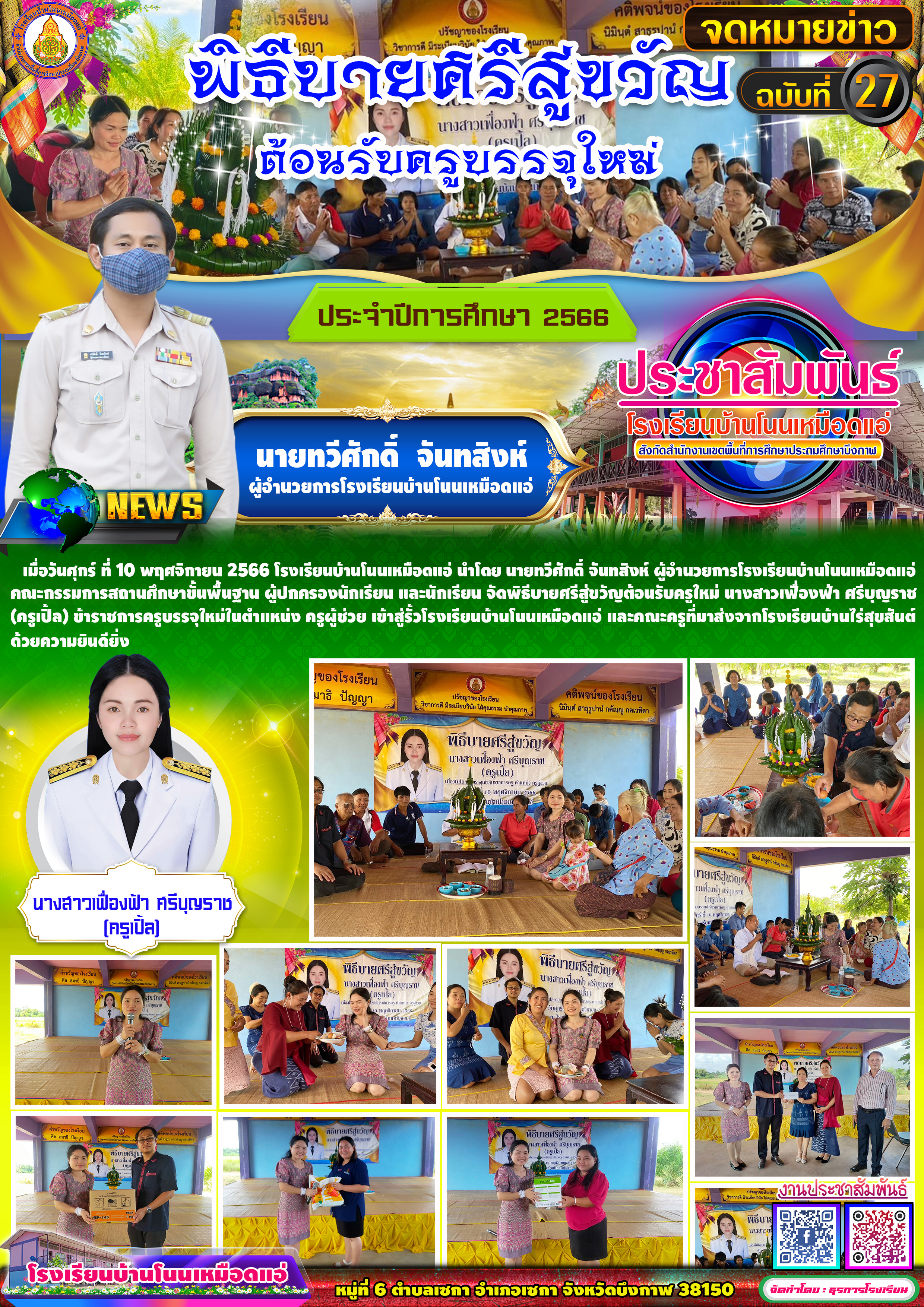 โรงเรียนบ้านโนนเหมือดแอ่ ขอประชาสัมพันธ์จดหมายข่าว ฉบับที่ 27 ปีการศึกษา 2566 พิธีบายศรีสู่ขวัญครูใหม่