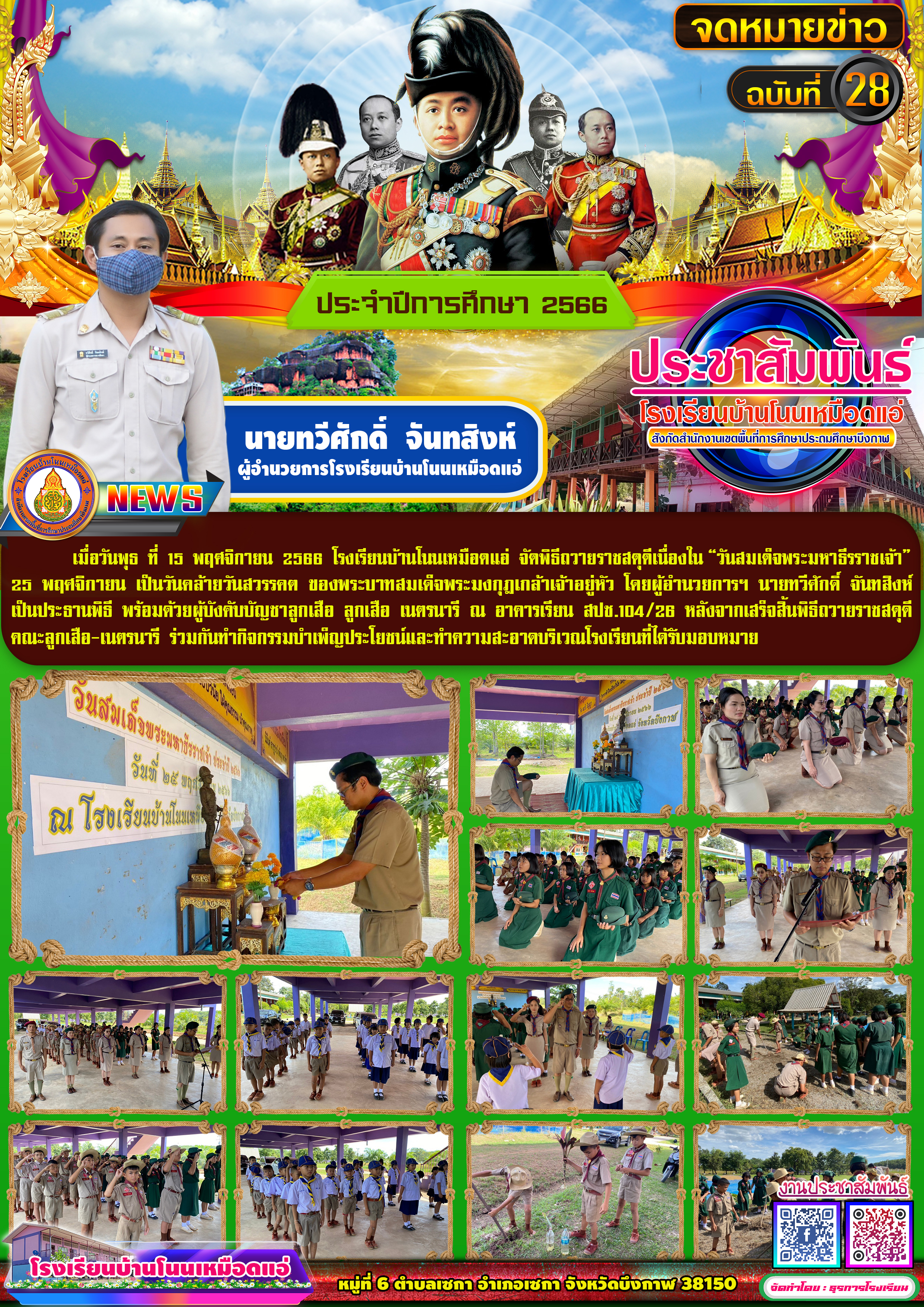 โรงเรียนบ้านโนนเหมือดแอ่ ขอประชาสัมพันธ์จดหมายข่าว ฉบับที่ 28 ปีการศึกษา 2566 พิธีถวายราชสดุดีเนื่องใน“วันสมเด็จพระมหาธีรราชเจ้า” ประจำปี 2566
