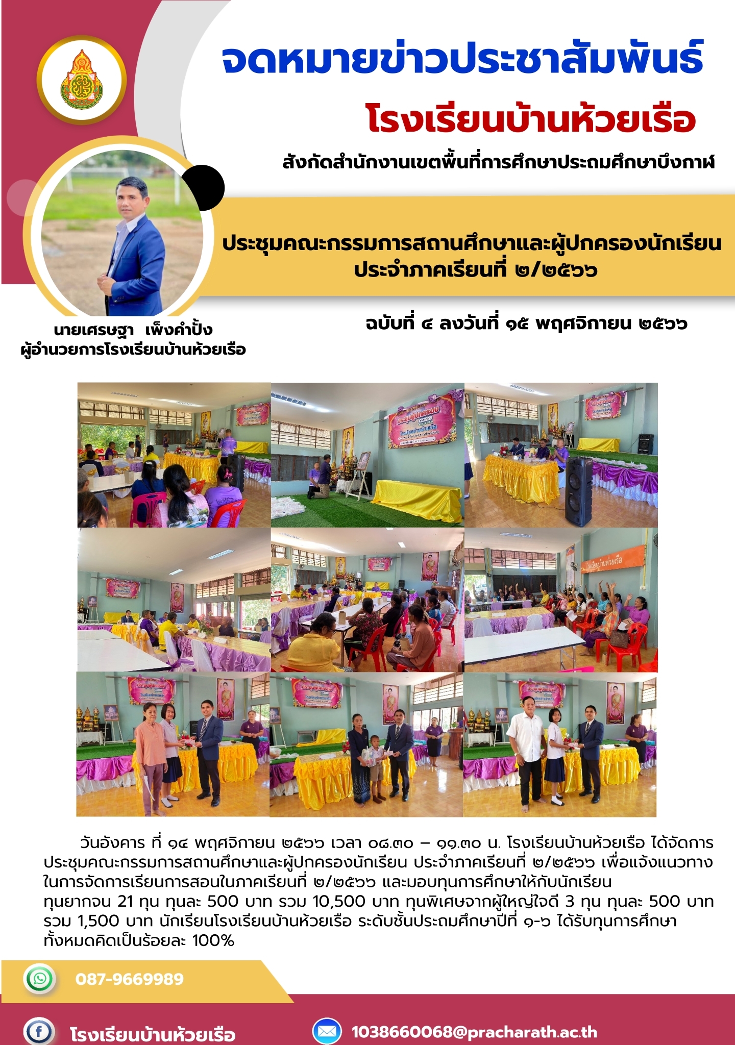 โรงเรียนบ้านห้วยเรือ ประชุมคณะกรรมการสถานศึกษา และผู้ปกครอง เปิดภานเรียนที่2/2566