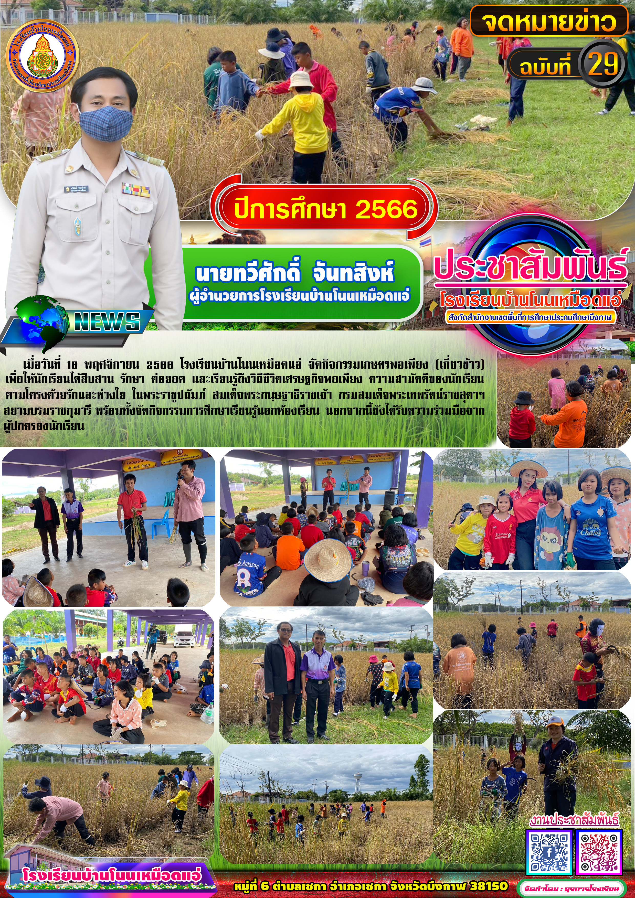 โรงเรียนบ้านโนนเหมือดแอ่ ขอประชาสัมพันธ์จดหมายข่าว ฉบับที่ 29 ปีการศึกษา 2566 กิจกรรมเกษตรพอเพียง (เกี่ยวข้าว)
