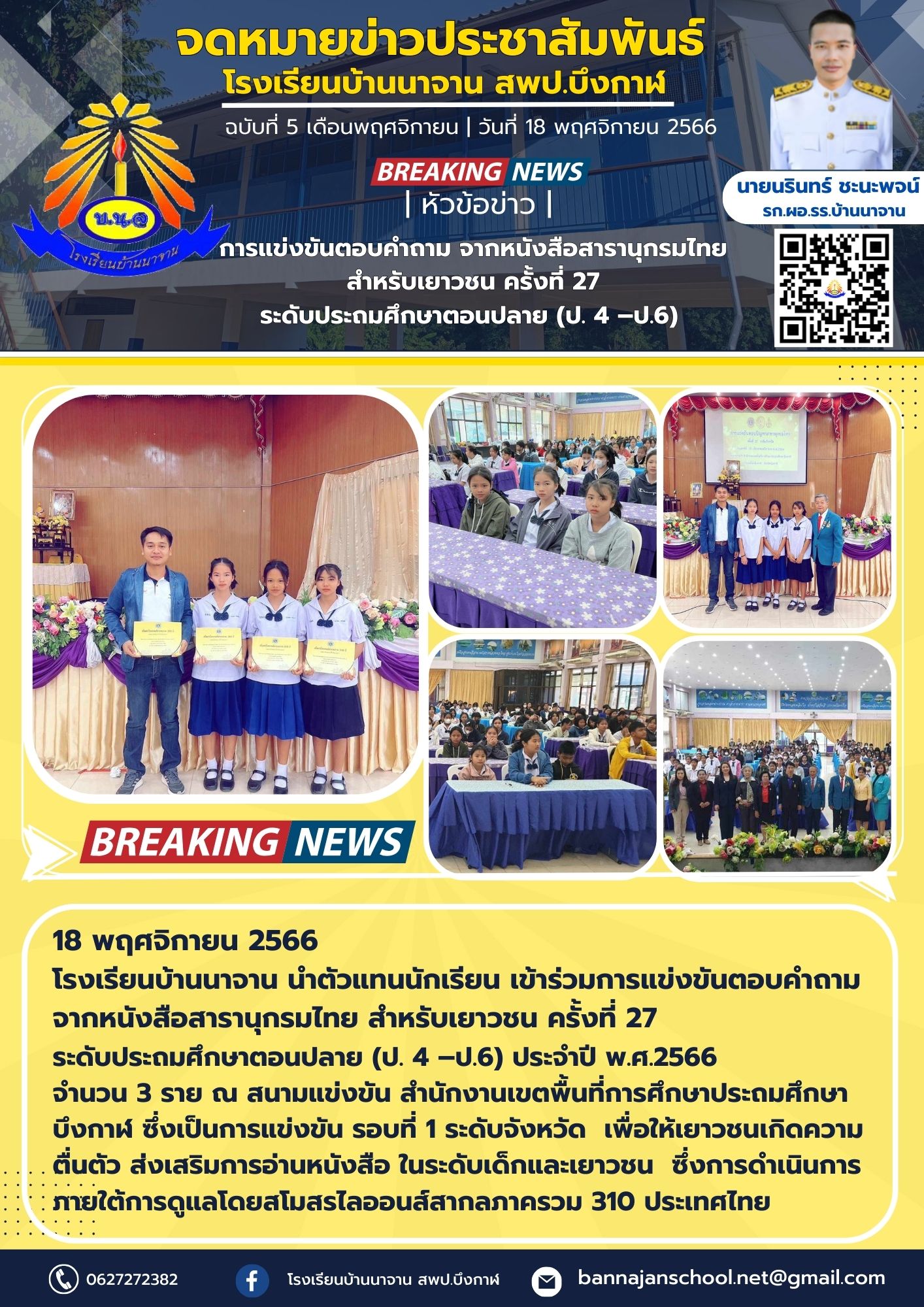 โรงเรียนบ้านนาจาน เข้าร่วมการแข่งขันตอบคำถาม จากหนังสือสารานุกรมไทย สำหรับเยาวชน ครั้งที่ 27