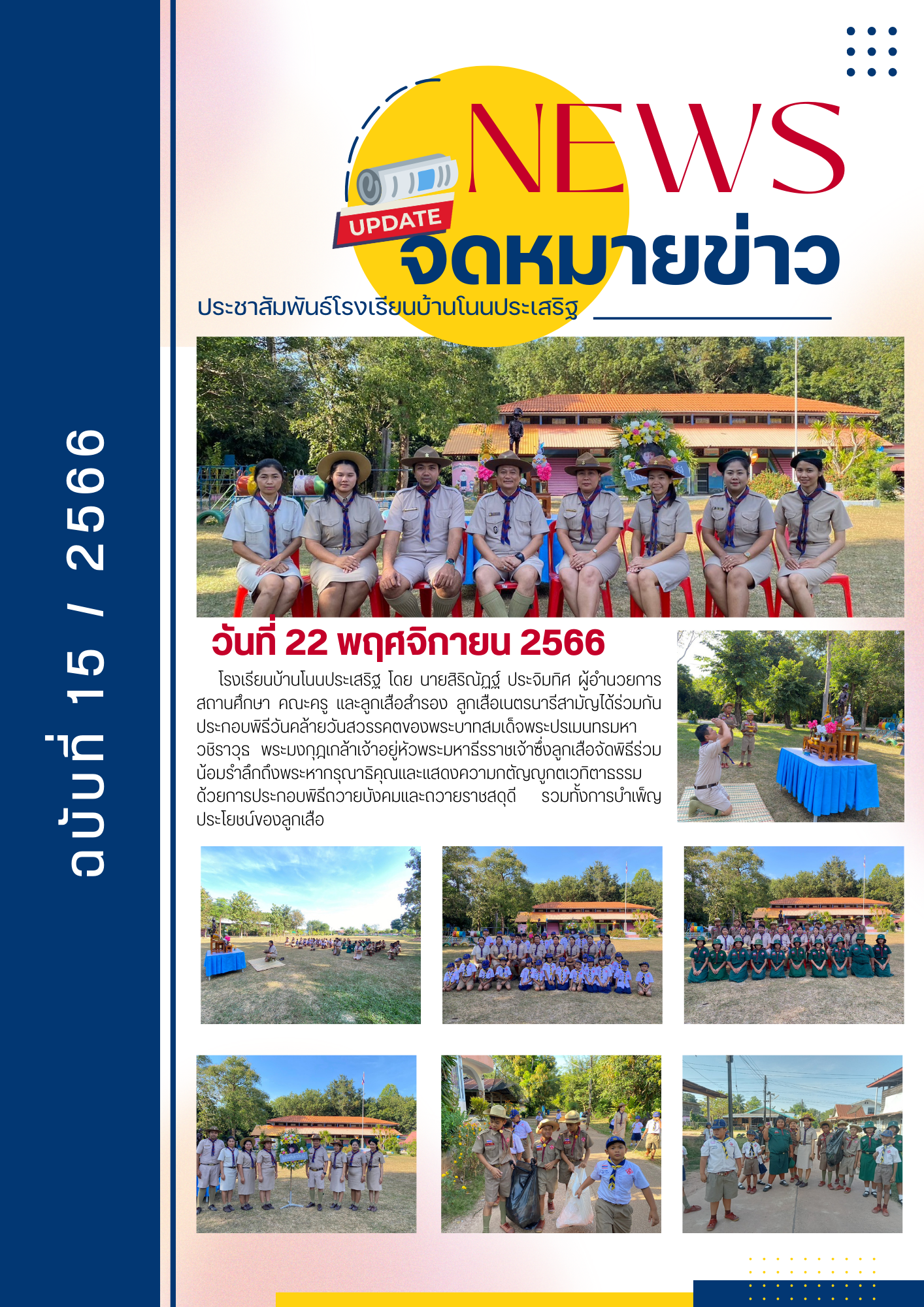 จดหมายข่าวประชาสัมพันธ์โรงเรียนบ้านโนนประเสริฐ ฉบับที่ 15/2566 เรื่อง การประกอบพิธีวันธีรราชเจ้า รัชกาลที่ 6