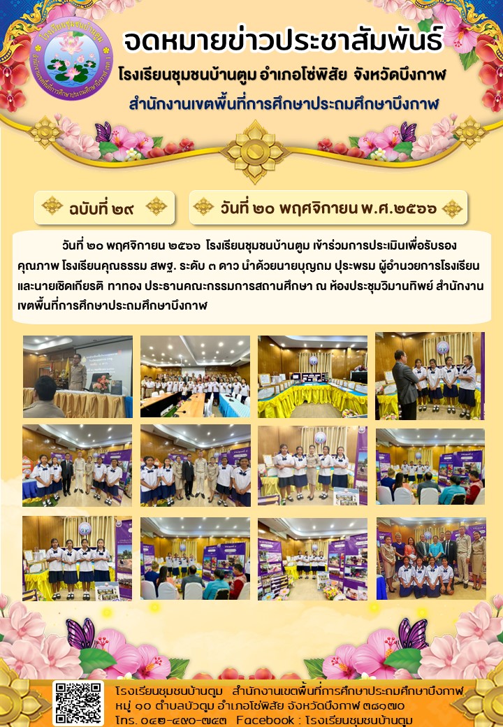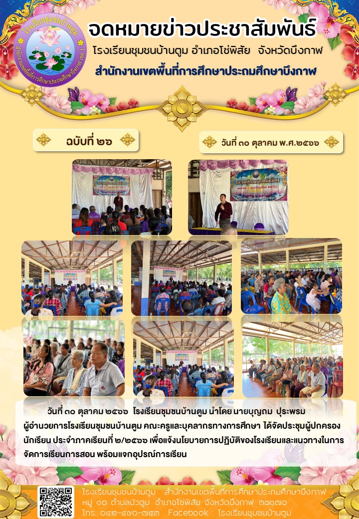 จดหมายข่าวประชาสัมพันธ์ โรงเรียนชุมชนบ้านตูม ฉบับที่ ๒๖/๒๕๖๖ "ประชุมผู้ปกครองประจำภาคเรียนที่ ๒/๒๕๖๖"