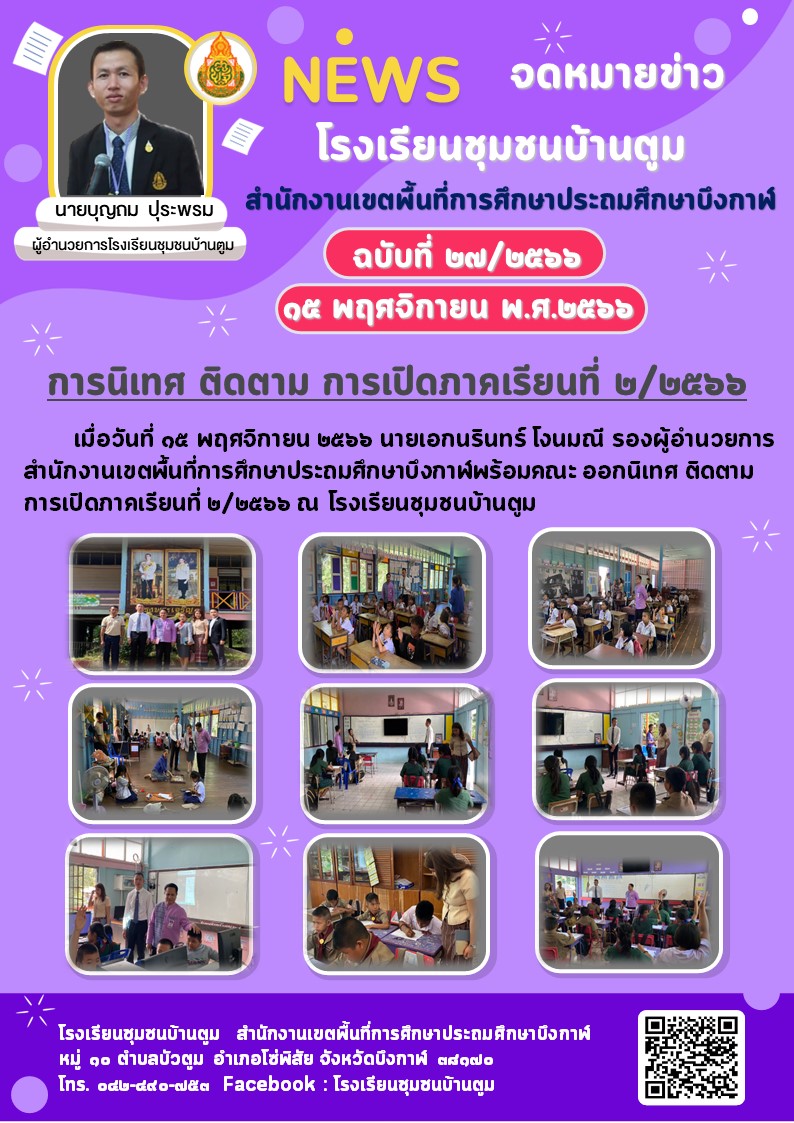 จดหมายข่าวประชาสัมพันธ์ โรงเรียนชุมชนบ้านตูม ฉบับที่ ๒๗/๒๕๖๖ "การนิเทศ ติดตามการเปิดภาคเรียนที่ ๒ ปีการศึกษา ๒๕๖๖