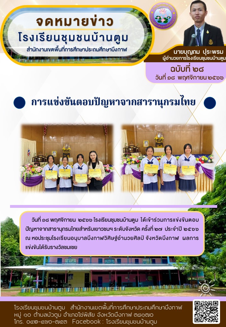 จดหมายข่าวประชาสัมพันธ์ โรงเรียนชุมชนบ้านตูม ฉบับที่ ๒๘/๒๕๖๖ "การแข่งขันตอบคำถามสารานุกรมไทย"
