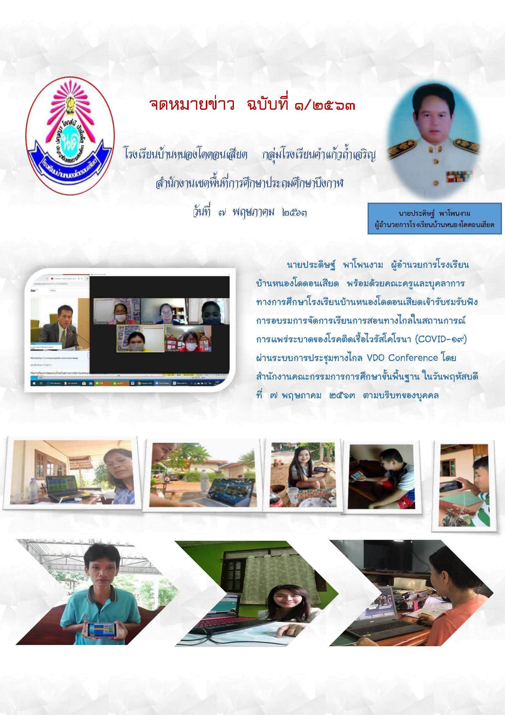 จดหมายข่าวโรงเรียนบ้านหนองโดดอนเสียด เรื่อง การอบรมการจัดการเรียนการสอนทางไกลในสถานการณ์ การแพร่ระบาดของโรคติดเชื้อไวรัสโคโรนา (COVID-๑๙) ผ่านระบบการประชุมทางไกล VDO Conference