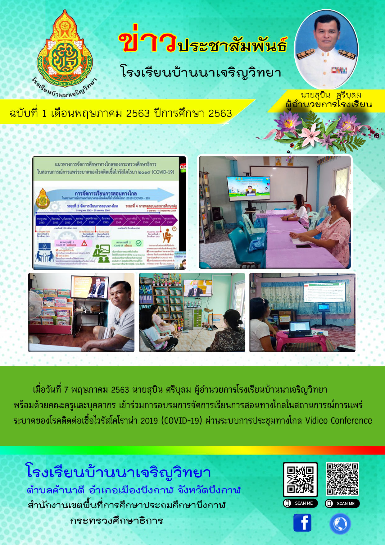 จดหมายข่าวโรงเรียนบ้านนาเจริญวิทยา เรื่อง การอบรมการจัดการเรียนการสอนทางไกลในสถานการณ์ การแพร่ระบาดของโรคติดเชื้อไวรัสโคโรนา (COVID-๑๙) ผ่านระบบการประชุมทางไกล VDO Conference