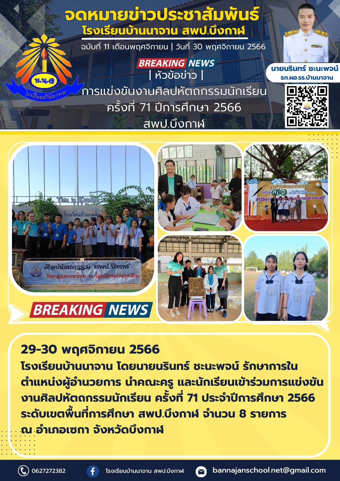 โรงเรียนบ้านนาจาน เข้าร่วมแข่งขันงานศิลปหัตถกรรมนักเรียน ครั้งที่ 71 ปีการศึกษา 2566 สพป.บึงกาฬ