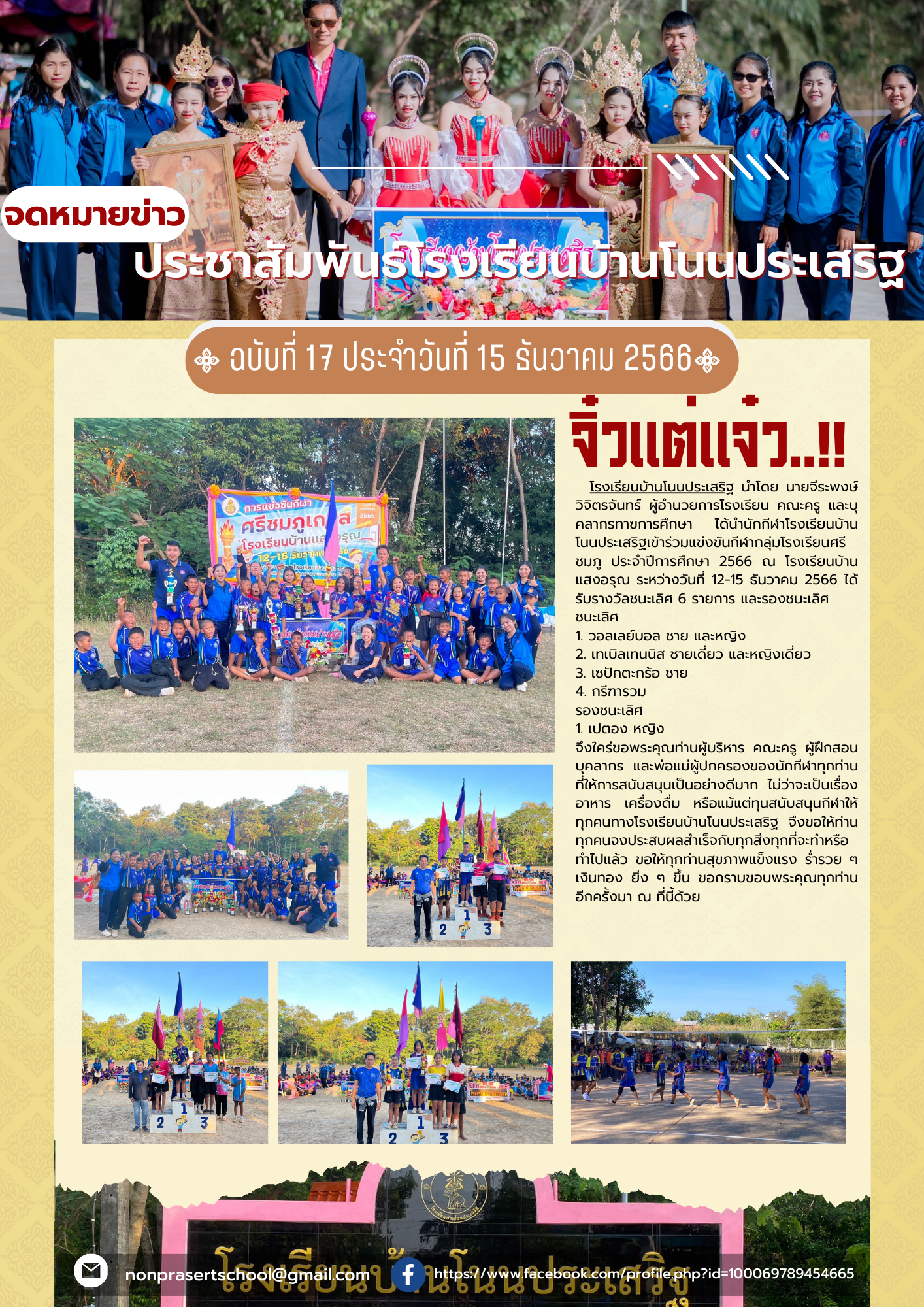 จดหมายข่าวประชาสัมพันธ์โรงเรียนบ้านโนนประเสริฐ ฉบับที่ 17/2566 เรื่อง การแข่งขันกีฬากลุ่มโรงเรียนศรีชมภู ปีการศึกษา 2566