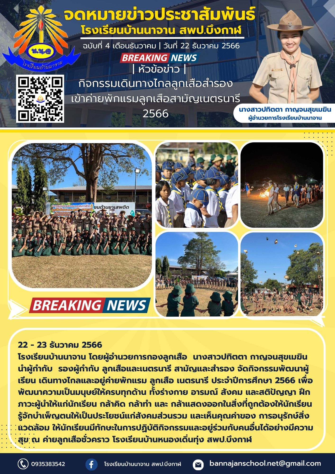 โรงเรียนบ้านนาจาน จัดกิจกรรมเดินทางไกลลูกเสือสำรอง เข้าค่ายพักแรมลูกเสือสามัญเนตรนารี 2566