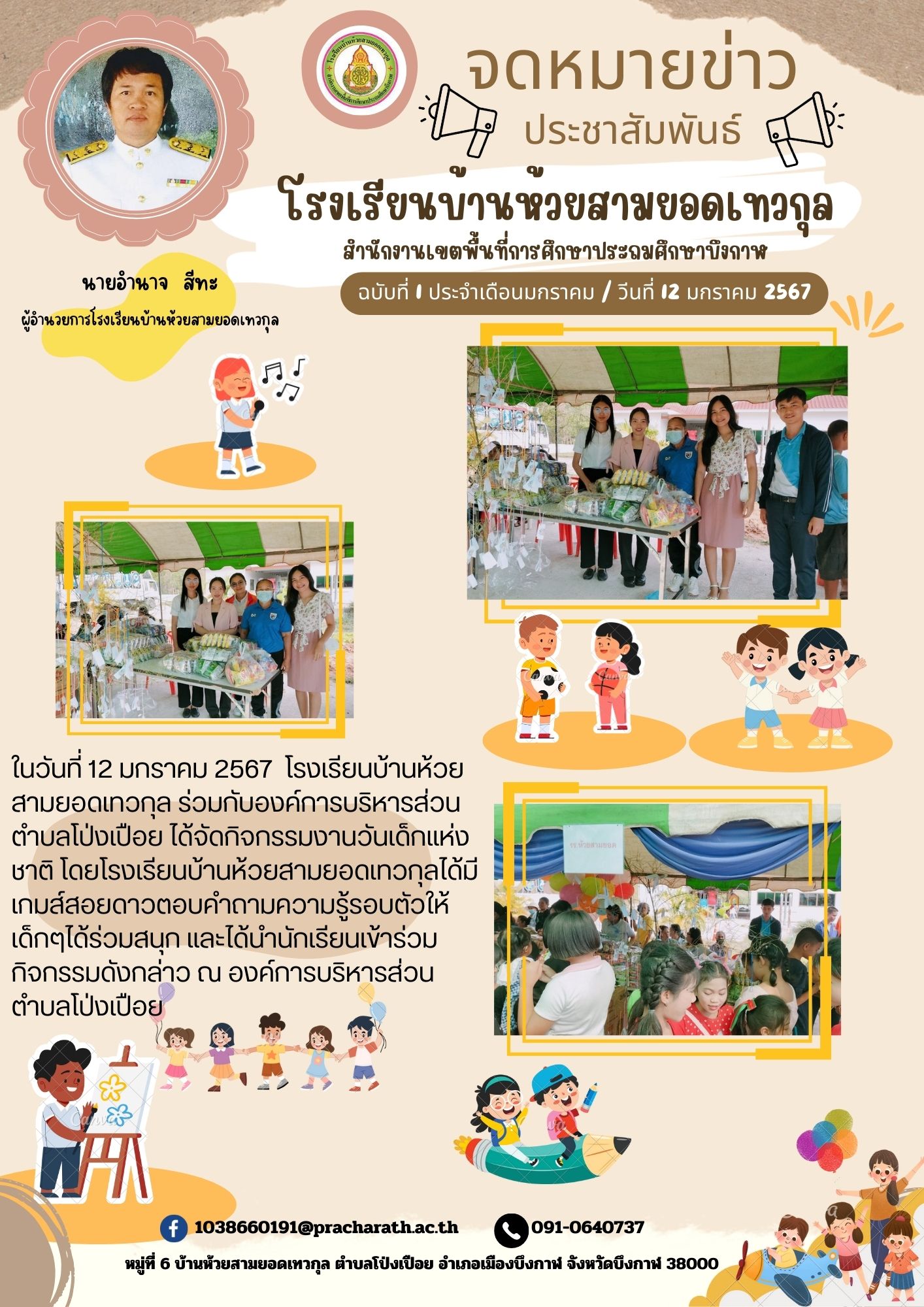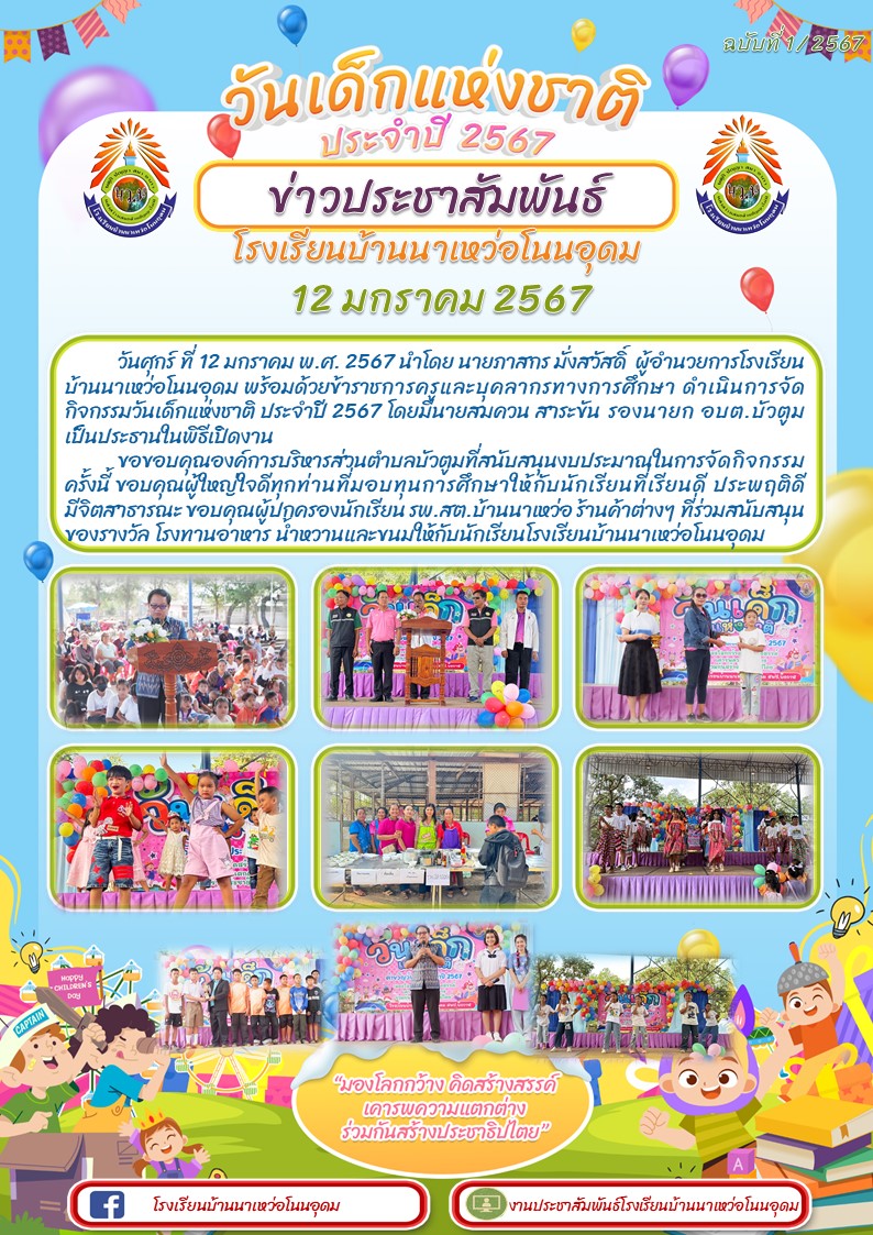 โรงเรียนบ้านนาเหว่อโนนอุดม ประช่สัมพันธ์จดหมายข่าว ฉบับที่ 1/2567 เรื่อง กิจกรรมวันเด็กแห่งชาติ ประจำปี พ.ศ.2567