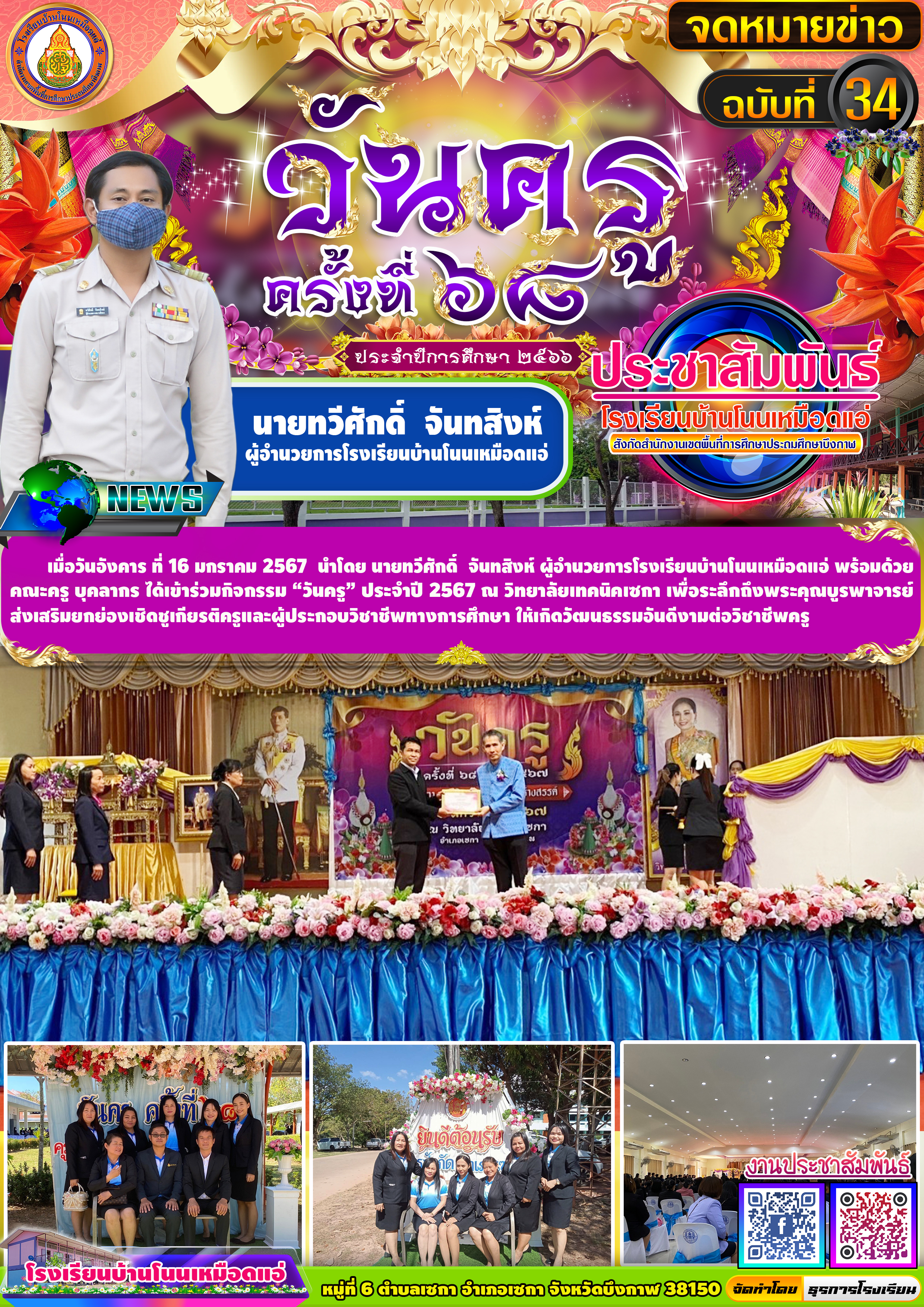 โรงเรียนบ้านโนนเหมือดแอ่ ขอประชาสัมพันธ์จดหมายข่าว ฉบับที่ 34 ปีการศึกษา 2566 กิจกรรม "วันครู" ประจำปี 2567