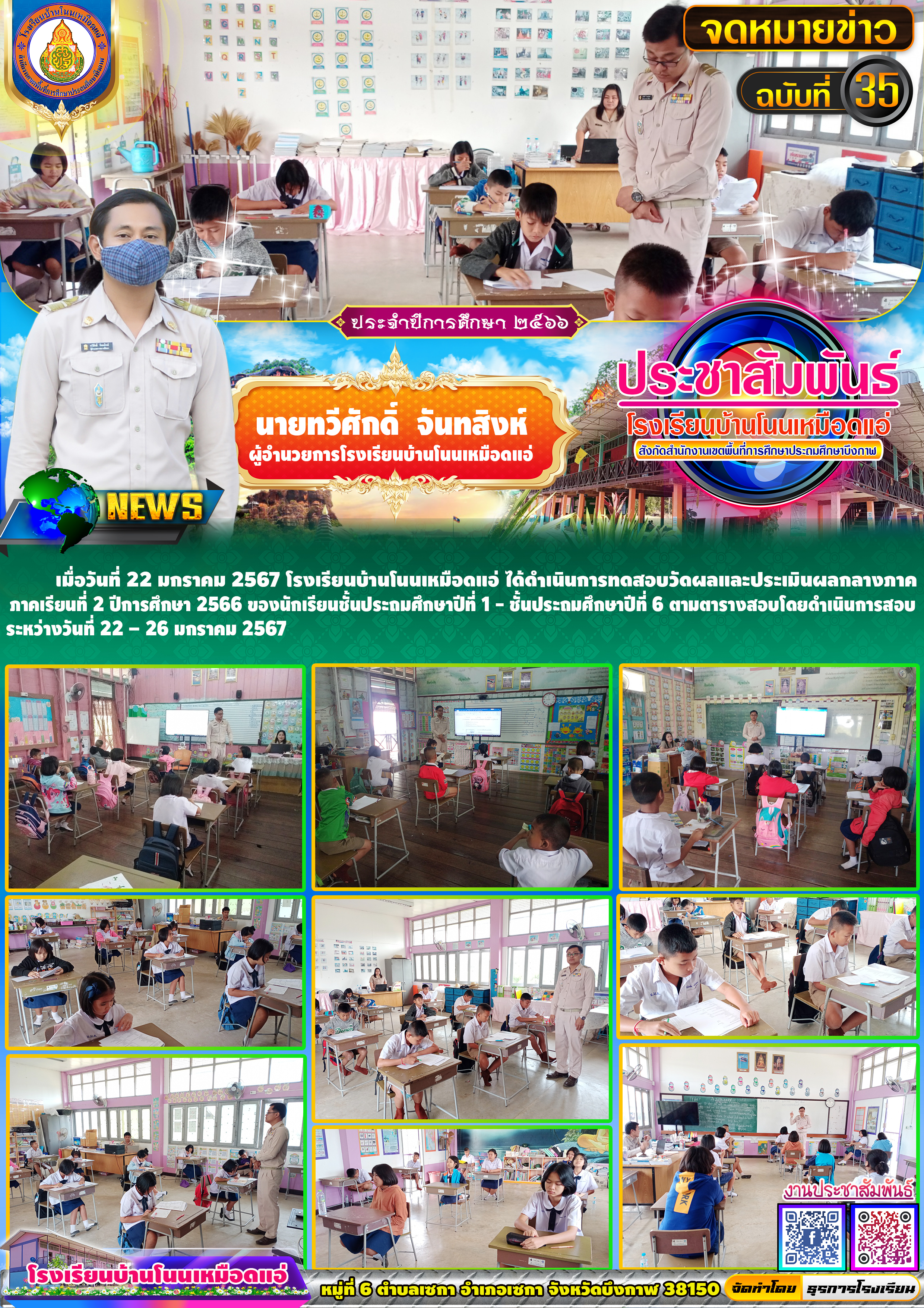 โรงเรียนบ้านโนนเหมือดแอ่ ขอประชาสัมพันธ์จดหมายข่าว ฉบับที่ 35 ปีการศึกษา 2566 การทดสอบวัดผลกลางภาคเรียนที่รที 2 ปีการศึกษา 2566