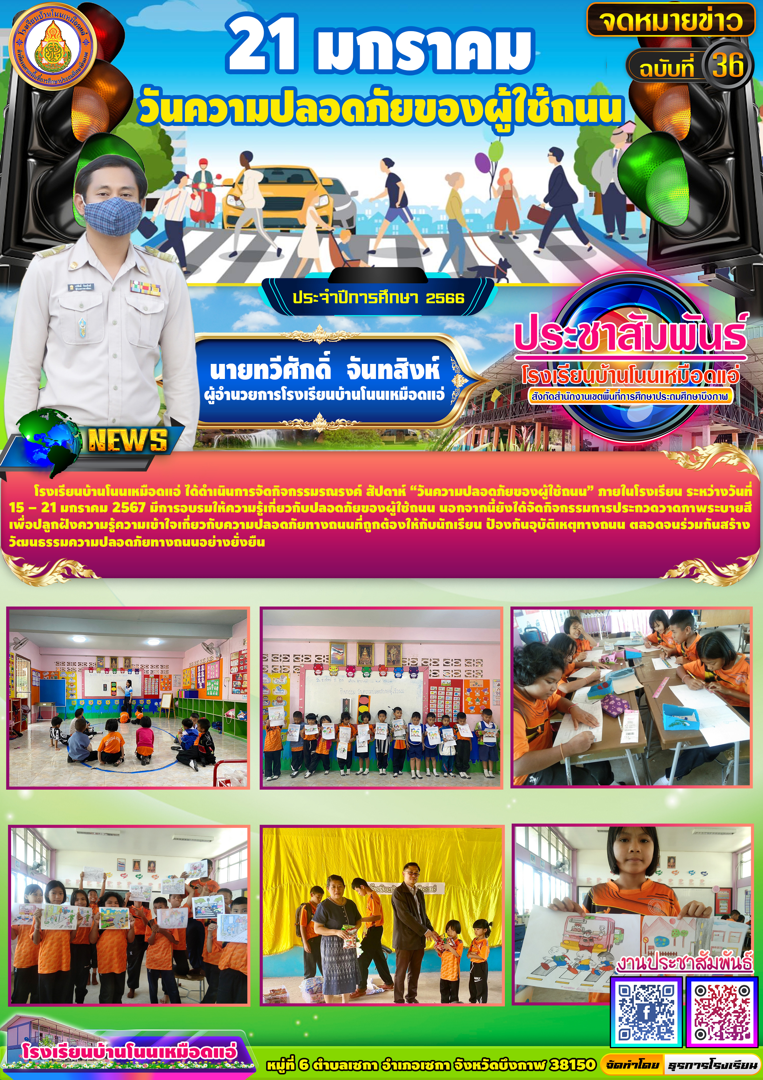 โรงเรียนบ้านโนนเหมือดแอ่ ขอประชาสัมพันธ์จดหมายข่าว ฉบับที่ 36 ปีการศึกษา 2566 กิจกรรมรณรงค์ สัปดาห์ “วันความปลอดภัยของผู้ใช้ถนน”