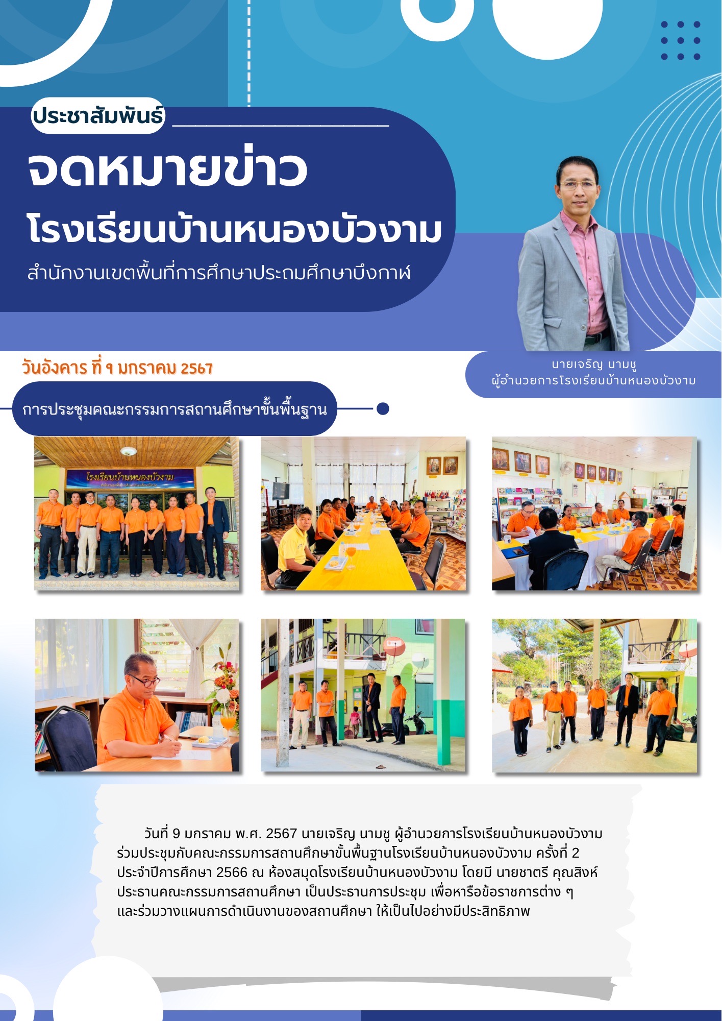 จดหม่ายข่าวโรงเรียนบ้านหนองบัวงาม ฉบับที่ 1/2567 การประชุมคณะกรรมการสถานศึกษาขั้นพื้นฐาน