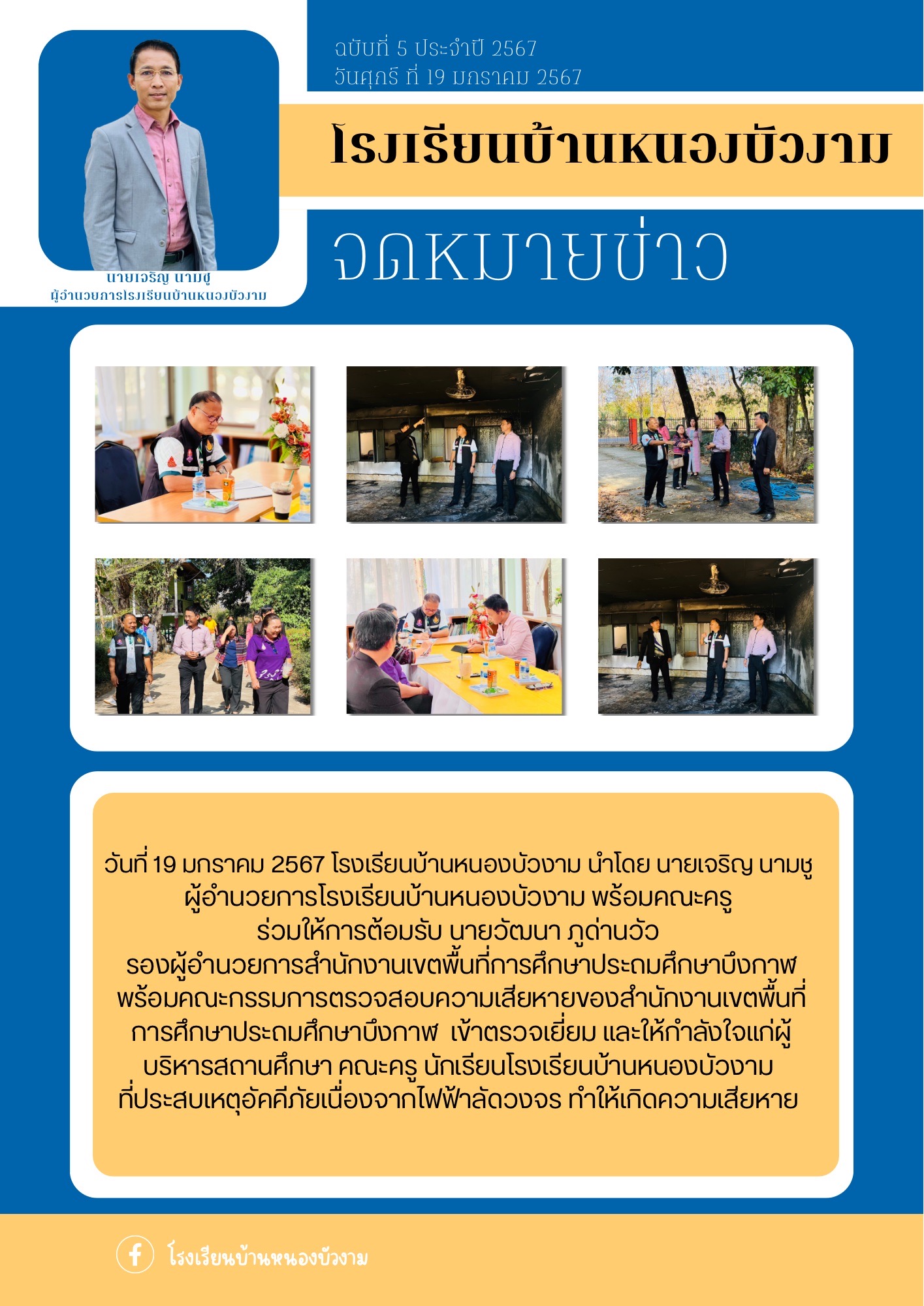 จดหมายข่าวโรงเรียนบ้านหนองบัวงาม ฉบับที่ 5/2567 การเข้าตรวจเยี่ยม เนื่องจากเหตุไฟฟ้าลัดวงจร