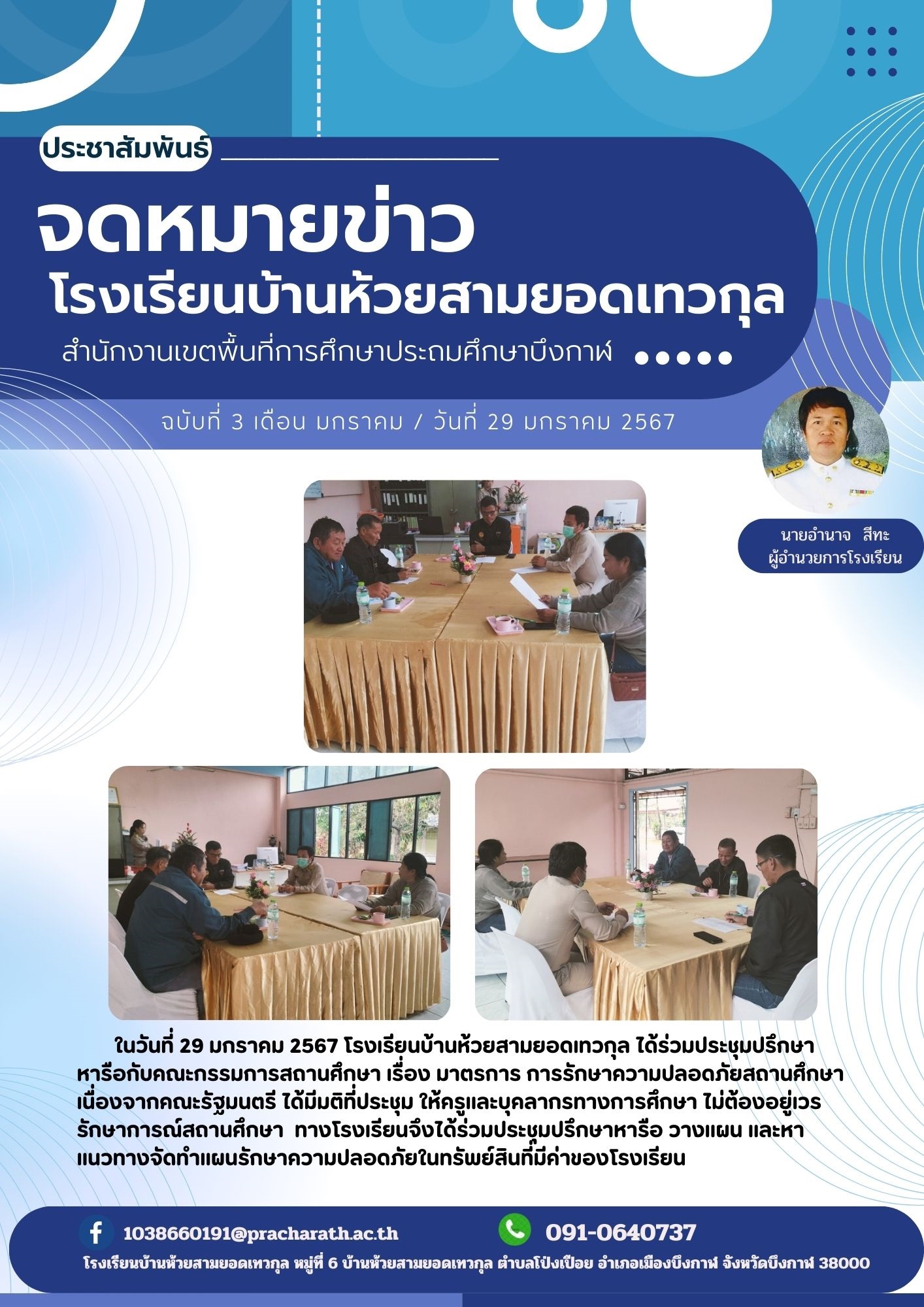 จดหมายข่าวประชาสัมพันธ์ ฉบับที่ 3 / 2567 โรงเรียนบ้านห้วยสามยอดเทวกุล ได้ร่วมประชุมปรึกษาหารือกับคณะกรรมการสถานศึกษา เรื่อง มาตรการ การรักษาความปลอดภัยสถานศึกษา