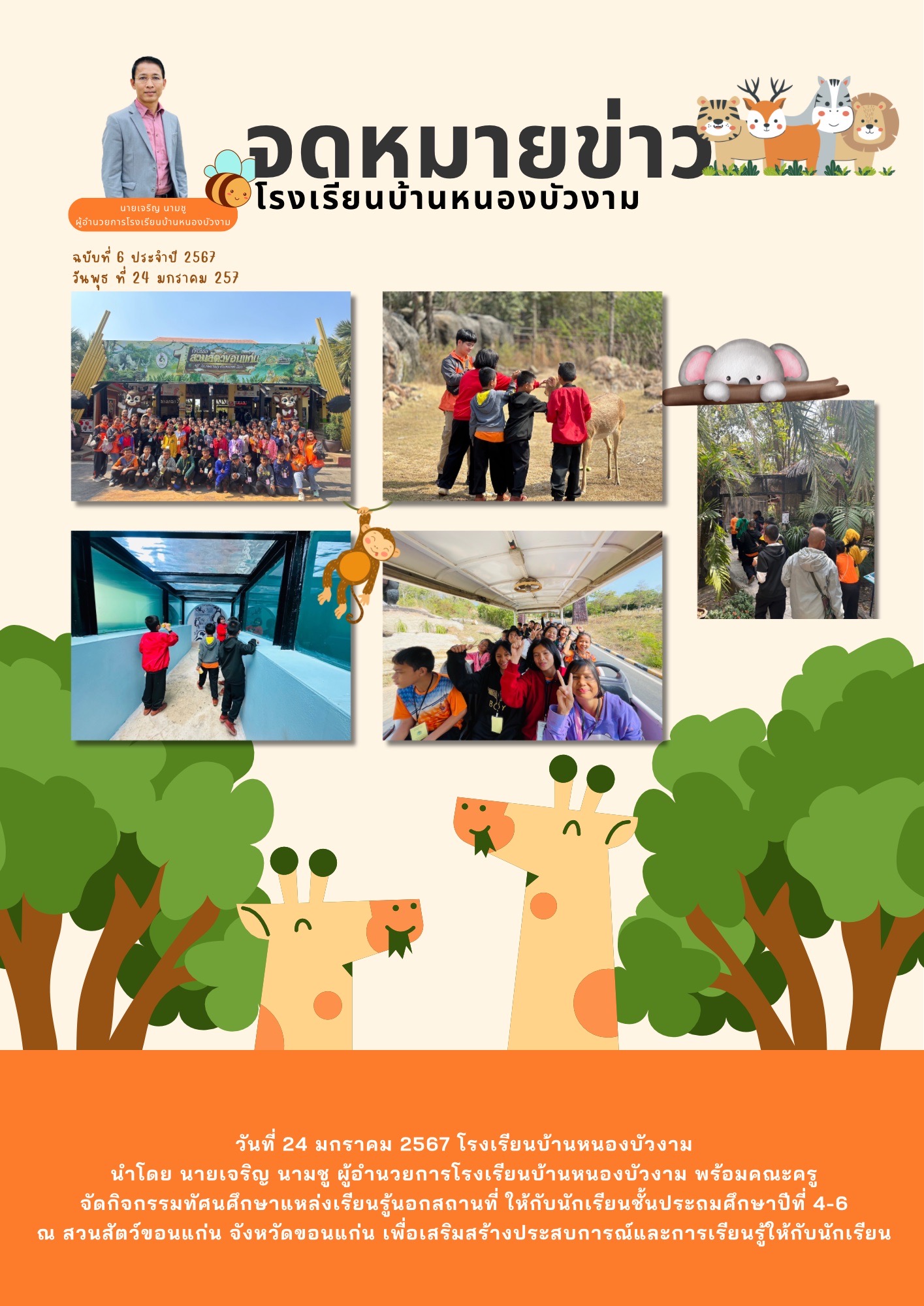 จดหมายข่าวโรงเรียนบ้านหนองบัวงาม ฉบับที่ 6/2567 กิจกรรมทัศนศึกษานอกสถานที่นักเรียนชั้น ป.4-6 ประจำปีการศึกษา 2566