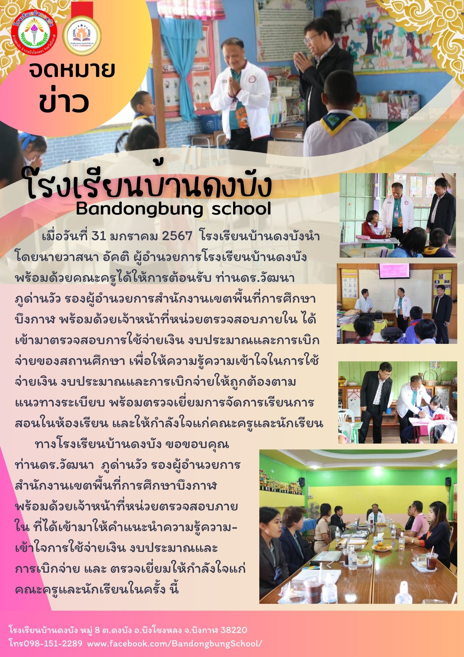 โรงเรียนบ้านดงบัง รับการตรวจเยี่ยมจากเจ้าหน้าที่ตรวจสอบภายในสถานศึกษา ปีการศึกษา 2566