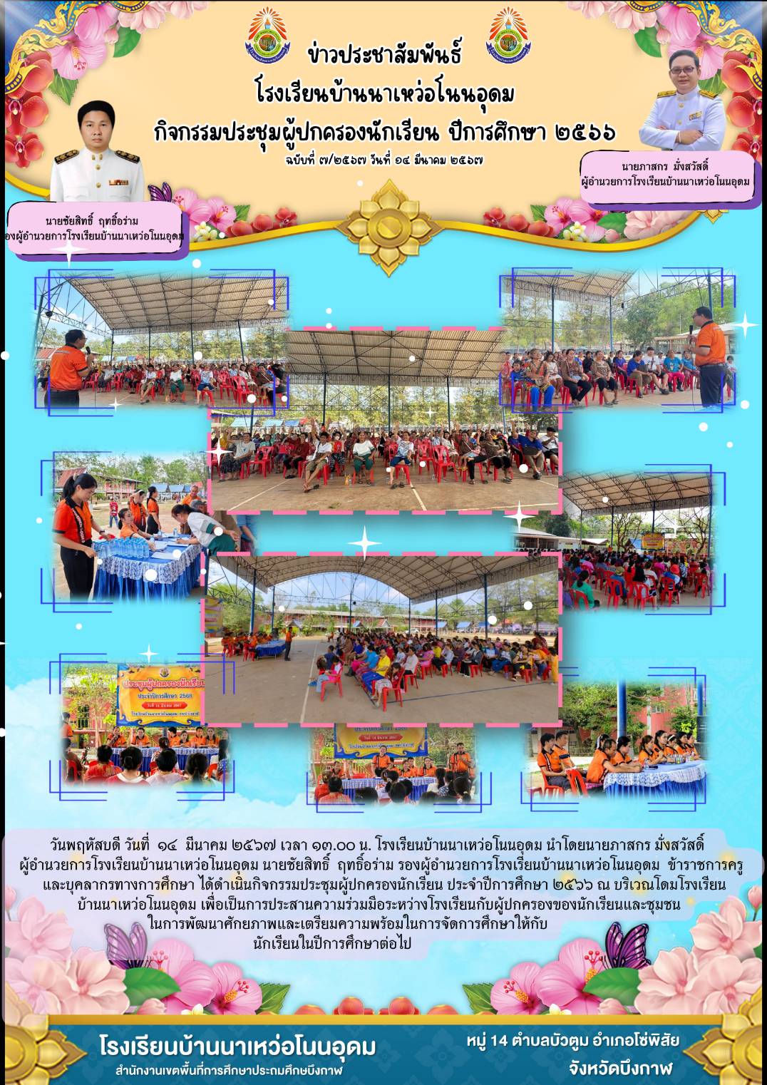 ประชาสัมพันธ์จดหมายข่าวโรงเรียนบ้านนาเหว่อโนอุดม ฉบับที่ 7 ลงวันที่ 14 มีนาคม 2567 กิจกรรมประชุมผู้ปกครองนักเรียน ประจำปีการศึกษา 2566