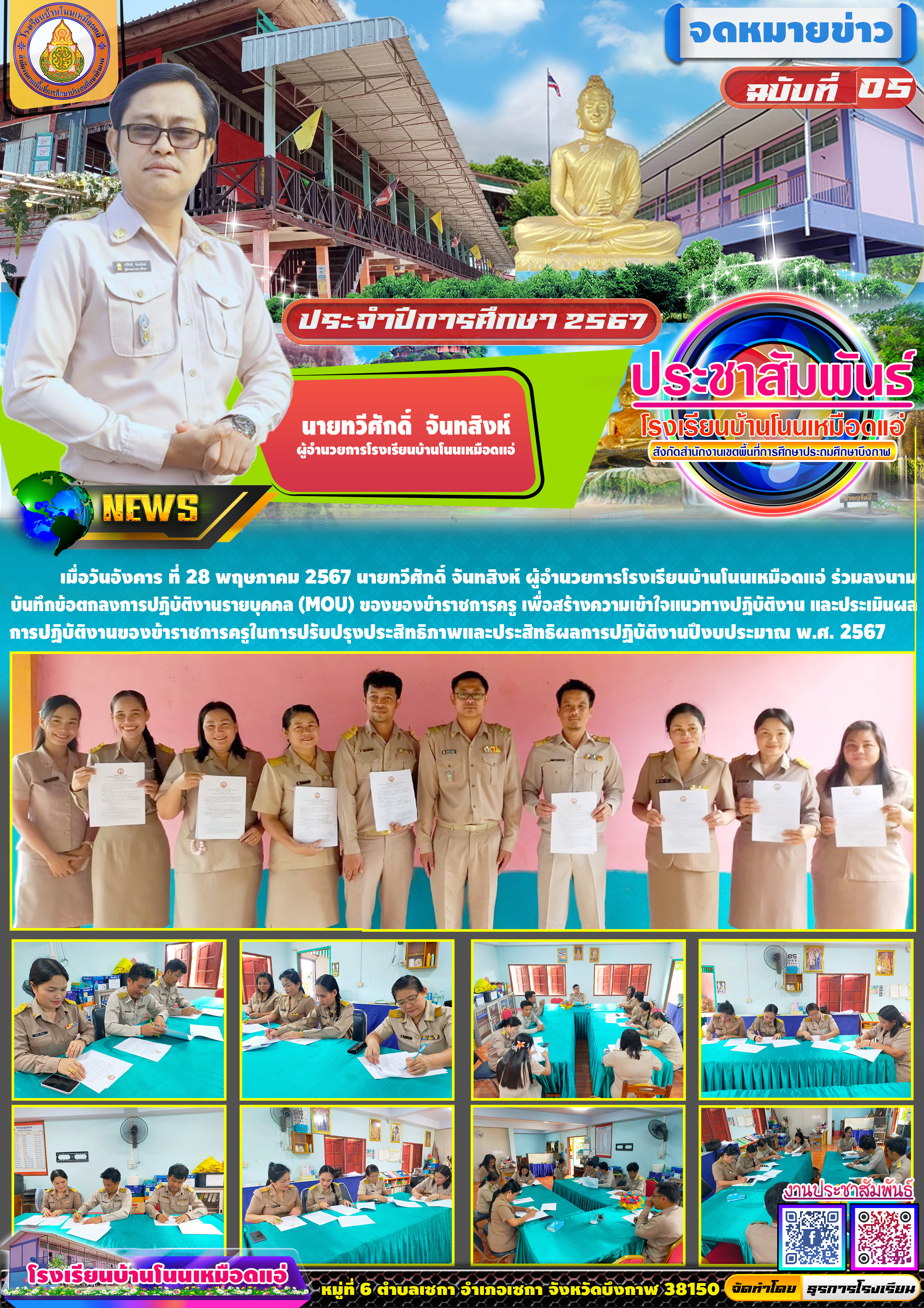 โรงเรียนบ้านโนนเหมือดแอ่ ขอประชาสัมพันธ์จดหมายข่าว ฉบับที่ 5 ปีการศึกษา 2567 บันทึกข้อตกลงการปฏิบัติงานรายบุคคล (MOU) ของของข้าราชการครู