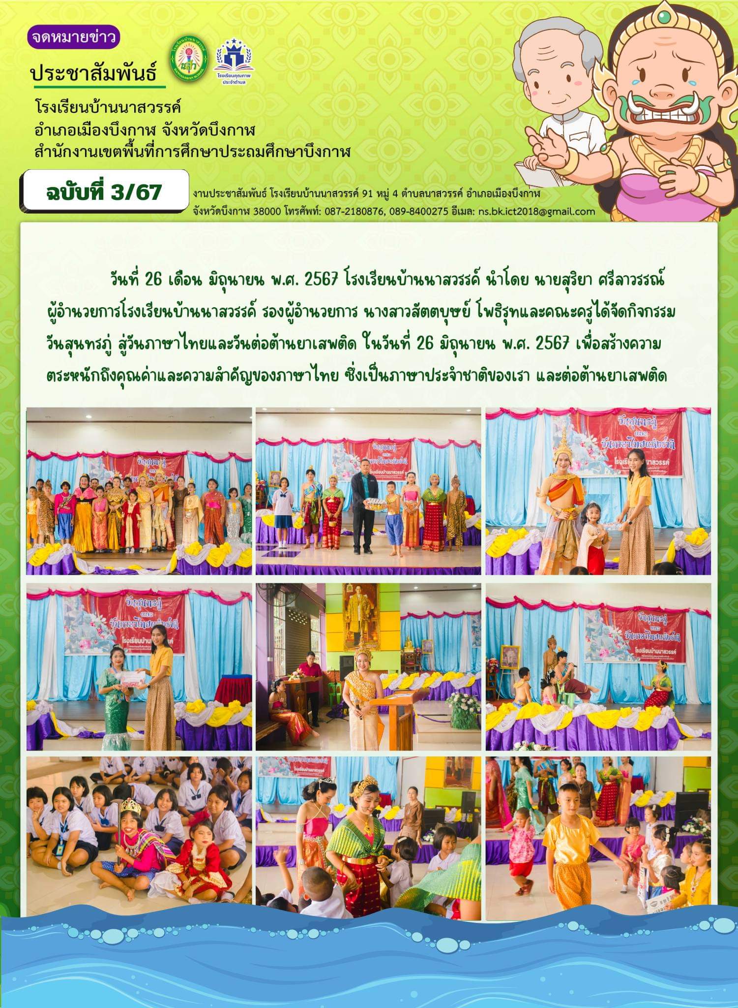 การจัดกิจกรรมวันสุนทรภู่ วันภาษาไทยแห่งชาติและวันต่อต้านยาเสพติด โรงเรียนบ้านนาสวรรค์ ปีการศึกษา 2567 วันที่ 26 มิถุนายน 2567