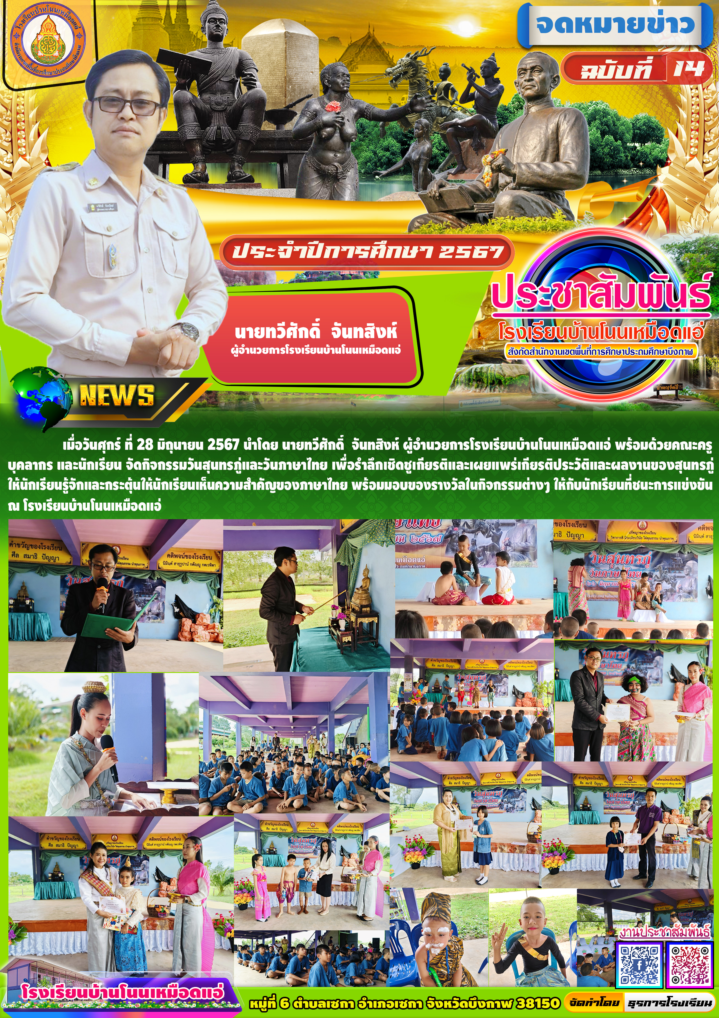 โรงเรียนบ้านโนนเหมือดแอ่ ขอประชาสัมพันธ์จดหมายข่าว ฉบับที่ 14 ปีการศึกษา 2567 กิจกรรมวันสุนทรภู่และวันภาษาไทย ประจำปีการศึกษา 2567