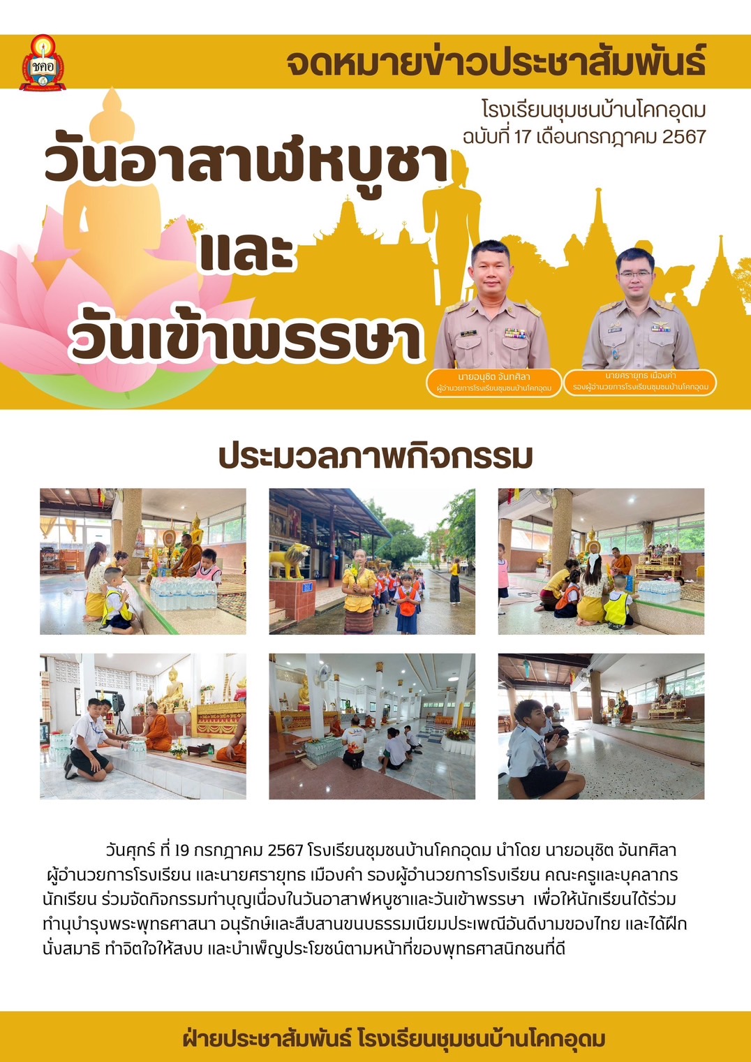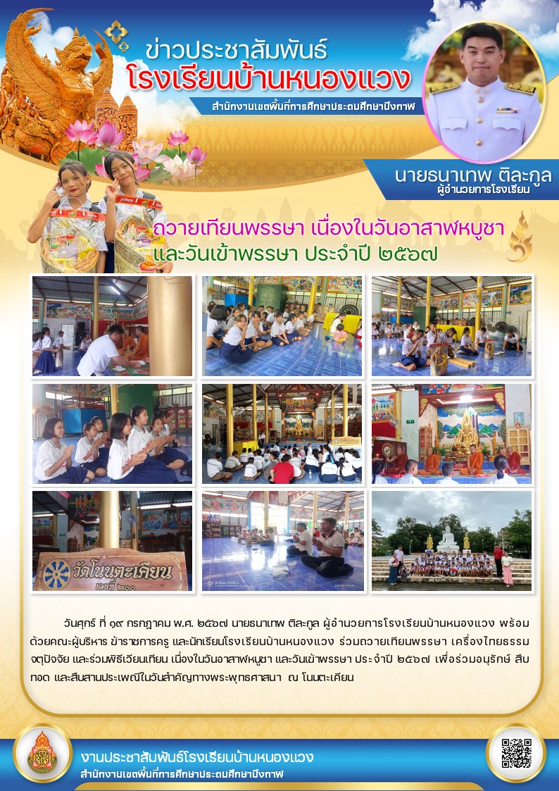 ![]() | กิจกรรมวันอาสาฬหบูชาและวันเข้าพรรษา 2567(เผยแพร่เมื่อวันที่ 25 กค 2567 13:27:40 น.) ผู้รายงาน : นางสาวพนิดา ดอนม่วง |
