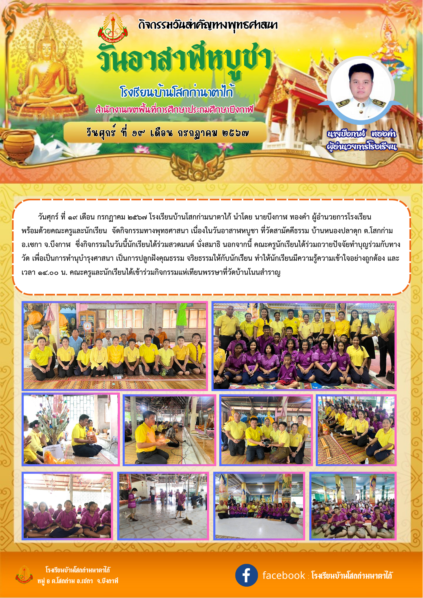 ![]() | กิจกรรมวันอาสาฬหบูชาและวันเข้าพรรษา(เผยแพร่เมื่อวันที่ 25 กค 2567 14:04:48 น.) ผู้รายงาน : ธุรการโรงเรียน บ้านโสกก่ามนาตาไก้ |