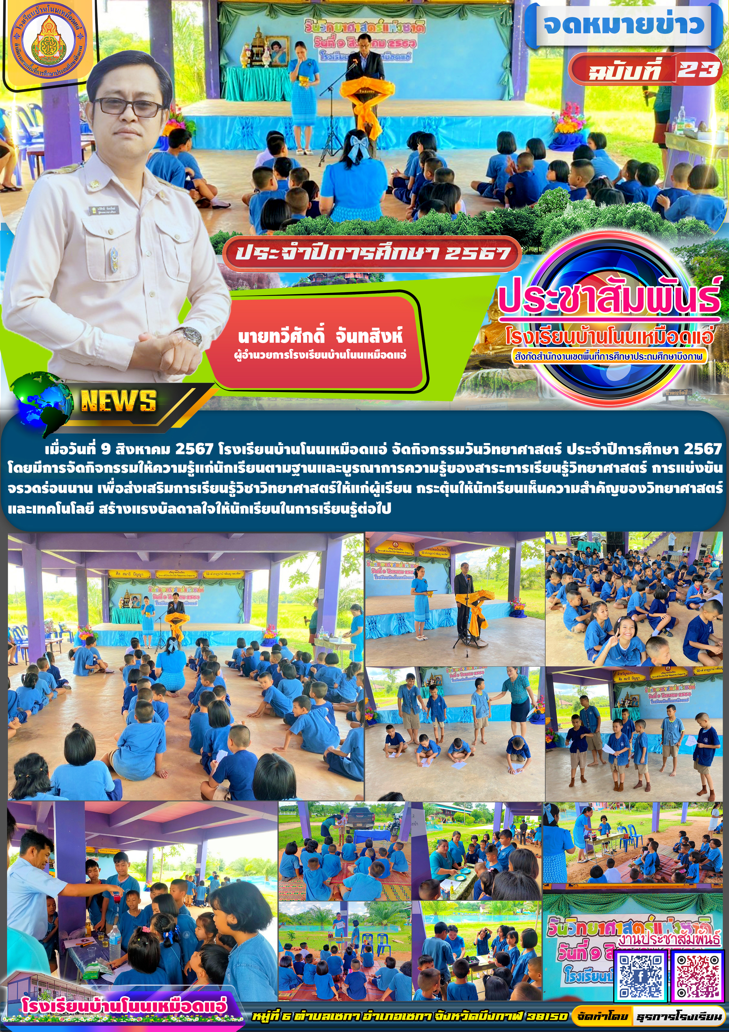 โรงเรียนบ้านโนนเหมือดแอ่ ขอประชาสัมพันธ์จดหมายข่าว ฉบับที่ 23 ปีการศึกษา 2567 กิจกรรมวันวิทยาศาสตร์ ประจำปีการศึกษา 2567