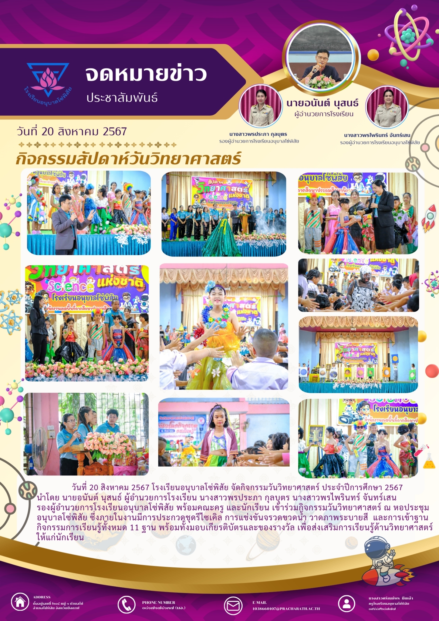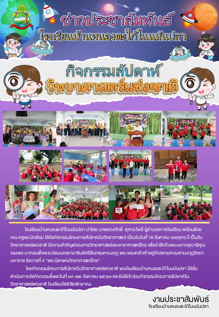 จดหมายข่าวประชาสัมพันธ์โรงเรียนบ้านเหล่าหนองยาง ฉบับที่ 13/2567 เรื่อง กิจกรรมวันวิทยาศาสตร์ ประจำปีการศึกษา 2567