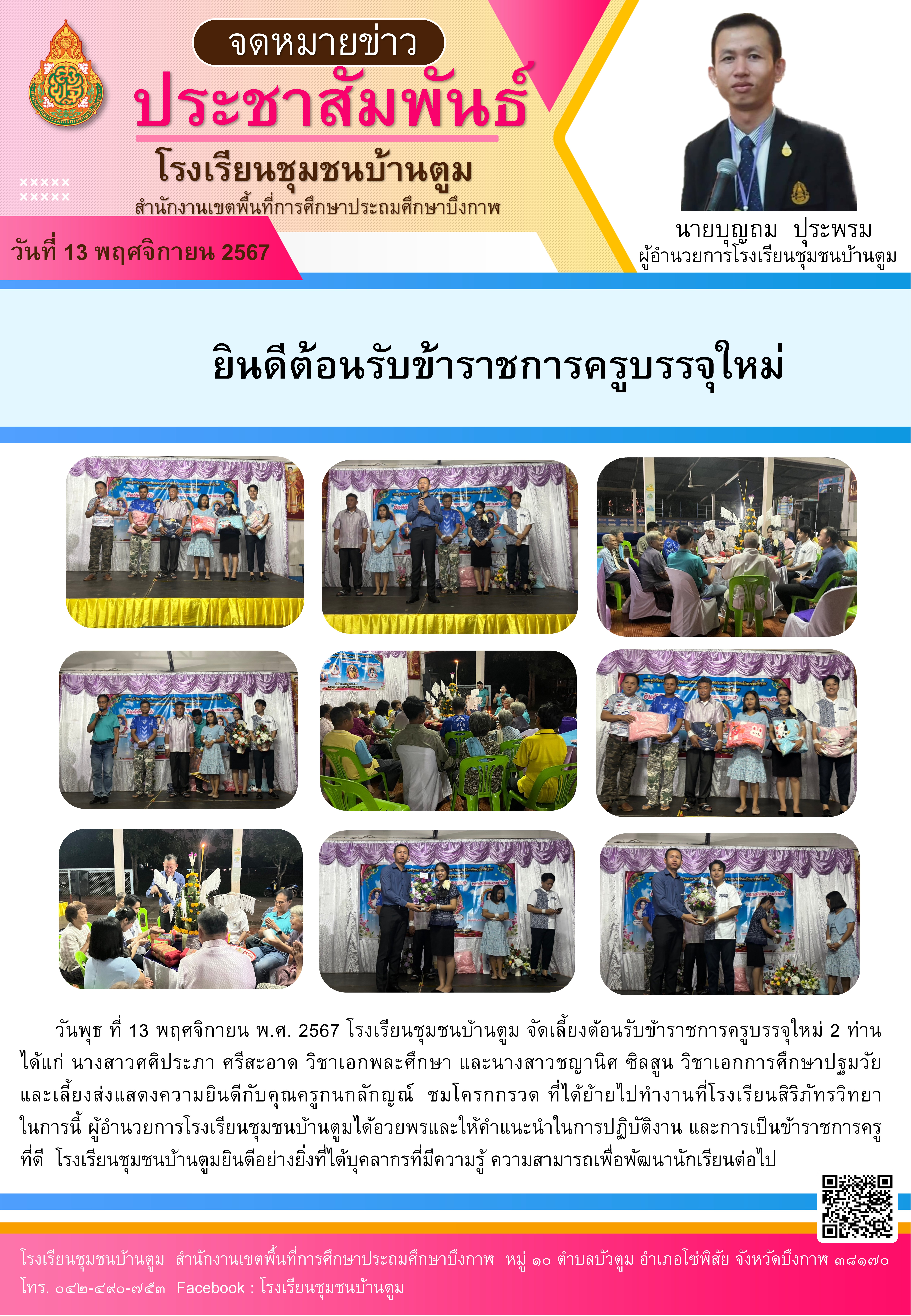 โรงเรียนชุมชนบ้านตูม ยินดีต้อนรับครูบรรจุใหม่