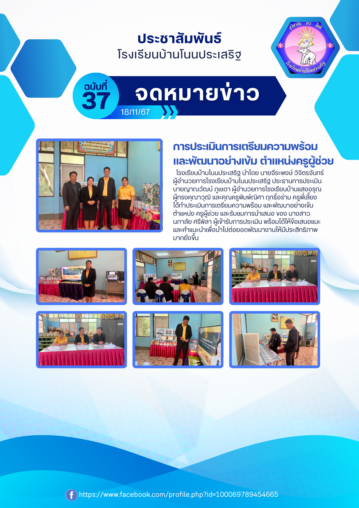 จดหมายข่าวประชาสัมพันธ์โรงเรียนบ้านโนนประเสริฐ ฉบับที่ 37/2567 เรื่อง การประเมินเตรียมความพร้อมและพัฒนาอย่างเข้มตำแหน่งครูผู้ช่วย