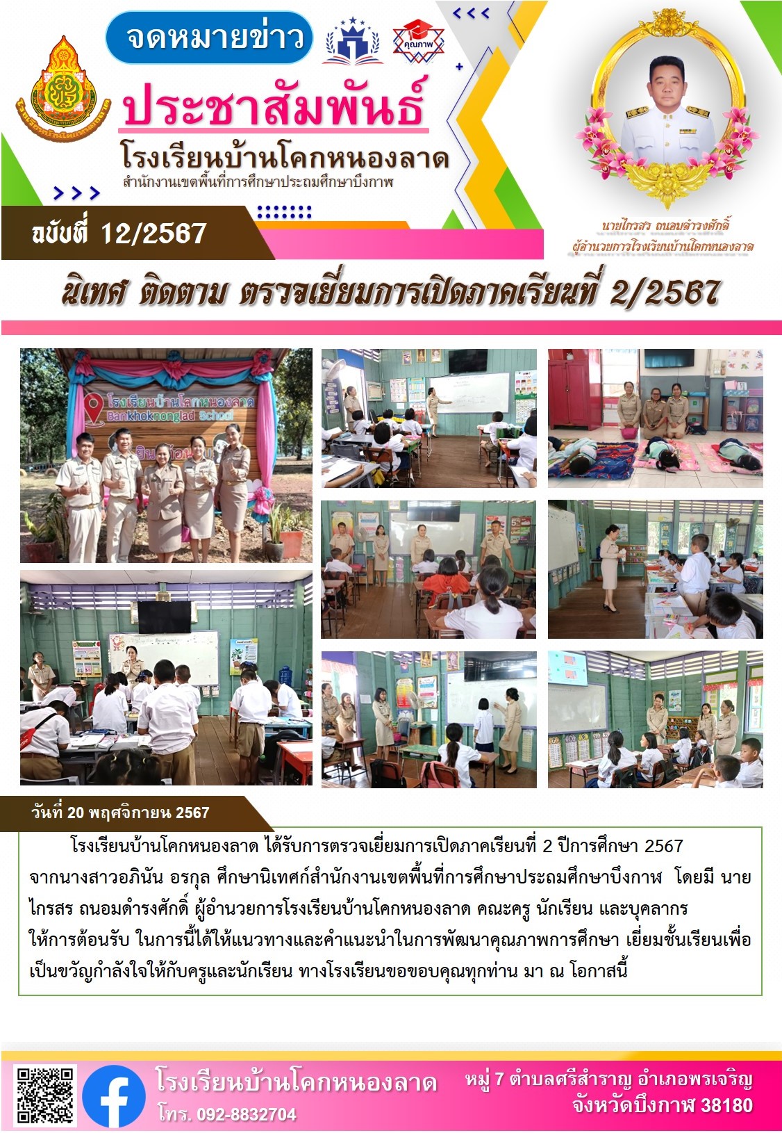 โรงเรียนบ้านโคกหนองลาด ประชาสัมพันธ์ การนิเทศติดตามการจัดการศึกษา จาก สพป.บึงกาฬ ภาคเรียนที่ 2 ปีการศึกษา 2567
