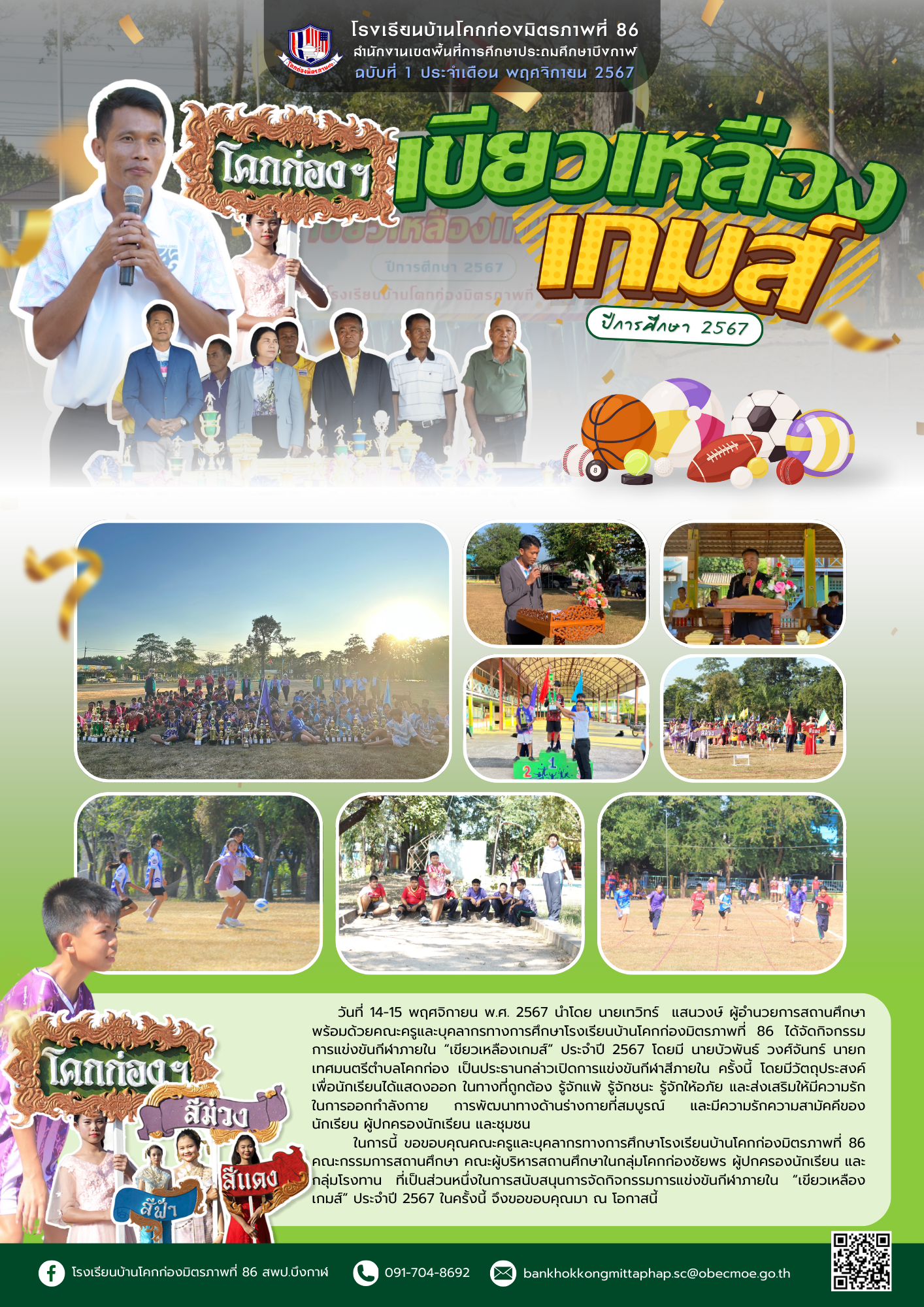 กิจกรรมการแข่งขันกีฬาภายใน “เขียวเหลืองเกมส์” ประจำปี 2567 โรงเรียนบ้านโคกก่องมิตรภาพที่ 86