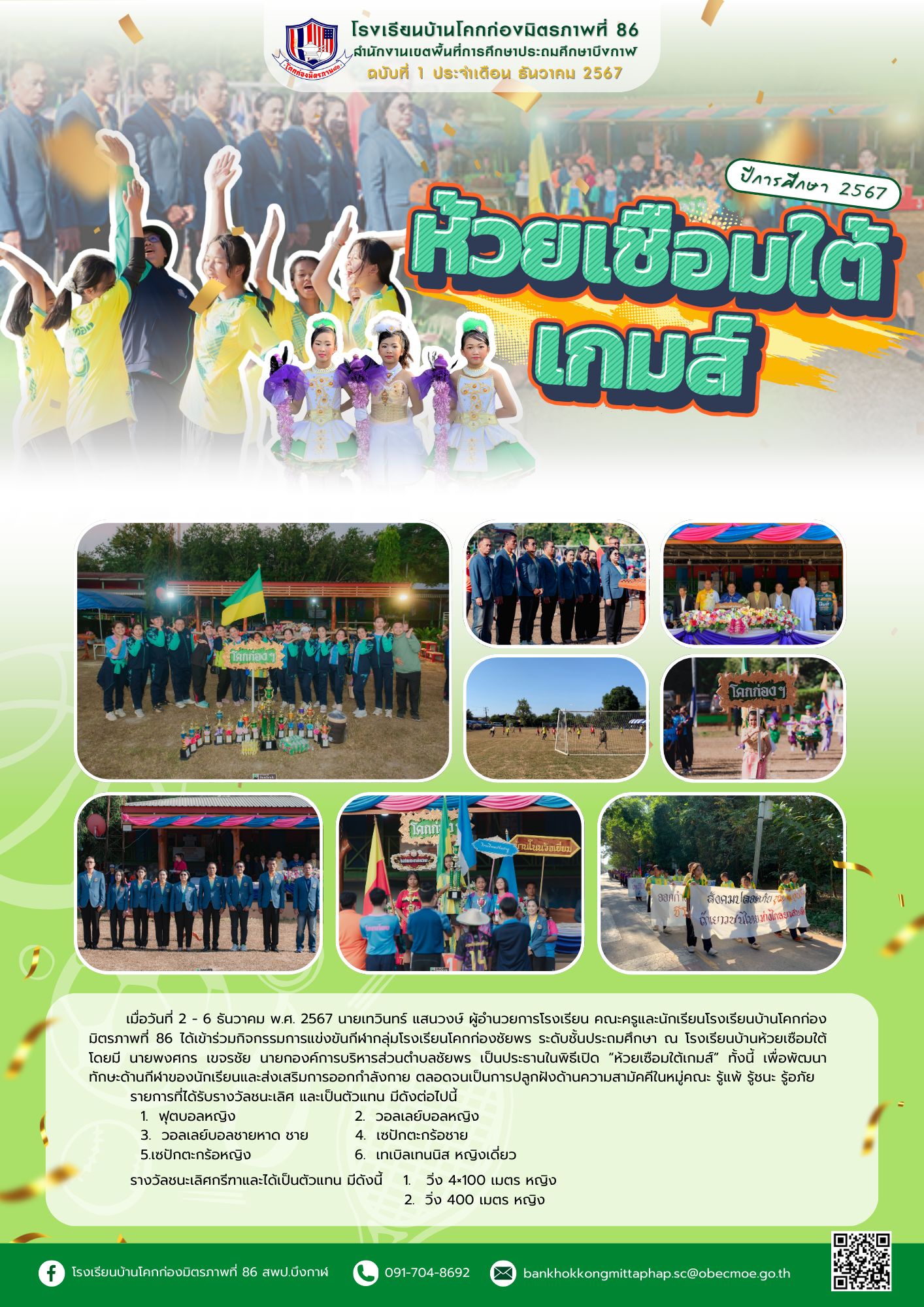 (เผยแพร่เมื่อวันที่ 17 ธค 2567 15:24:41 น.) ผู้รายงาน : ธุรการโรงเรียน บ้านโคกก่องมิตรภาพที่ 86