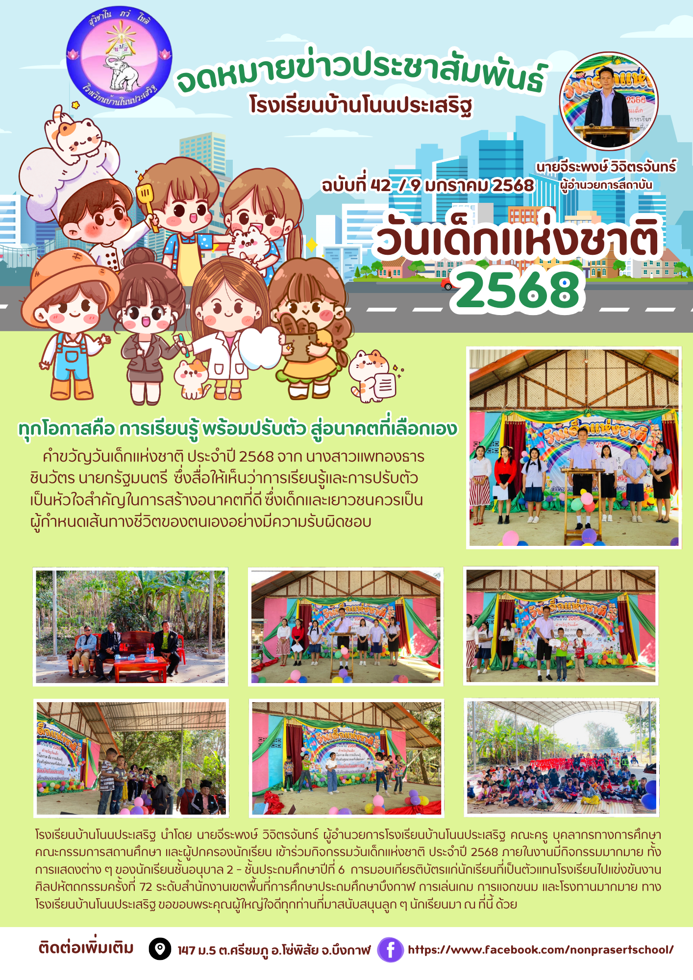 ![]() | โรงเรียนบ้านโนนเหมือดแอ่ ขอประชาสัมพันธ์จดหมายข่าว ฉบับที่ 30 ปีการศึกษา 2567 กิจกรรมวันเด็ก ประจำปี 2568(เผยแพร่เมื่อวันที่ 14 มค 2568 13:07:04 น.) ผู้รายงาน : ธุรการโรงเรียน บ้านโนนเหมือดแอ่ |