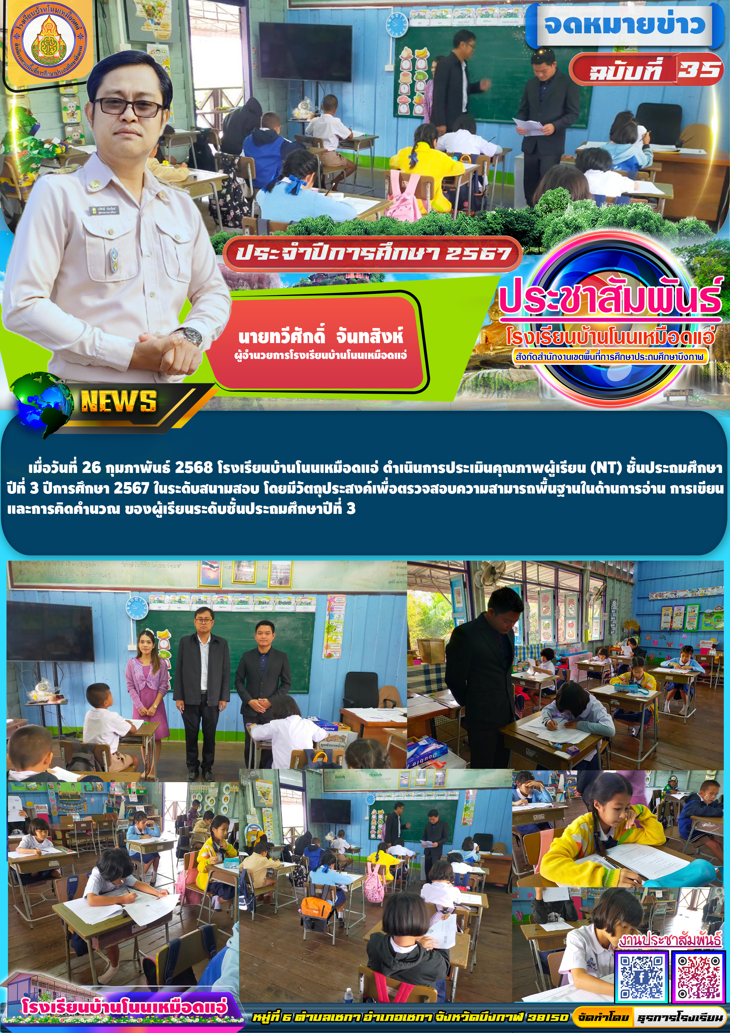 โรงเรียนบ้านโนนเหมือดแอ่ ขอประชาสัมพันธ์จดหมายข่าว ฉบับที่ 35 ปีการศึกษา 2567 การประเมินคุณภาพผู้เรียน (NT) ชั้นประถมศึกษาปีที่3 ปีการศึกษา 2567