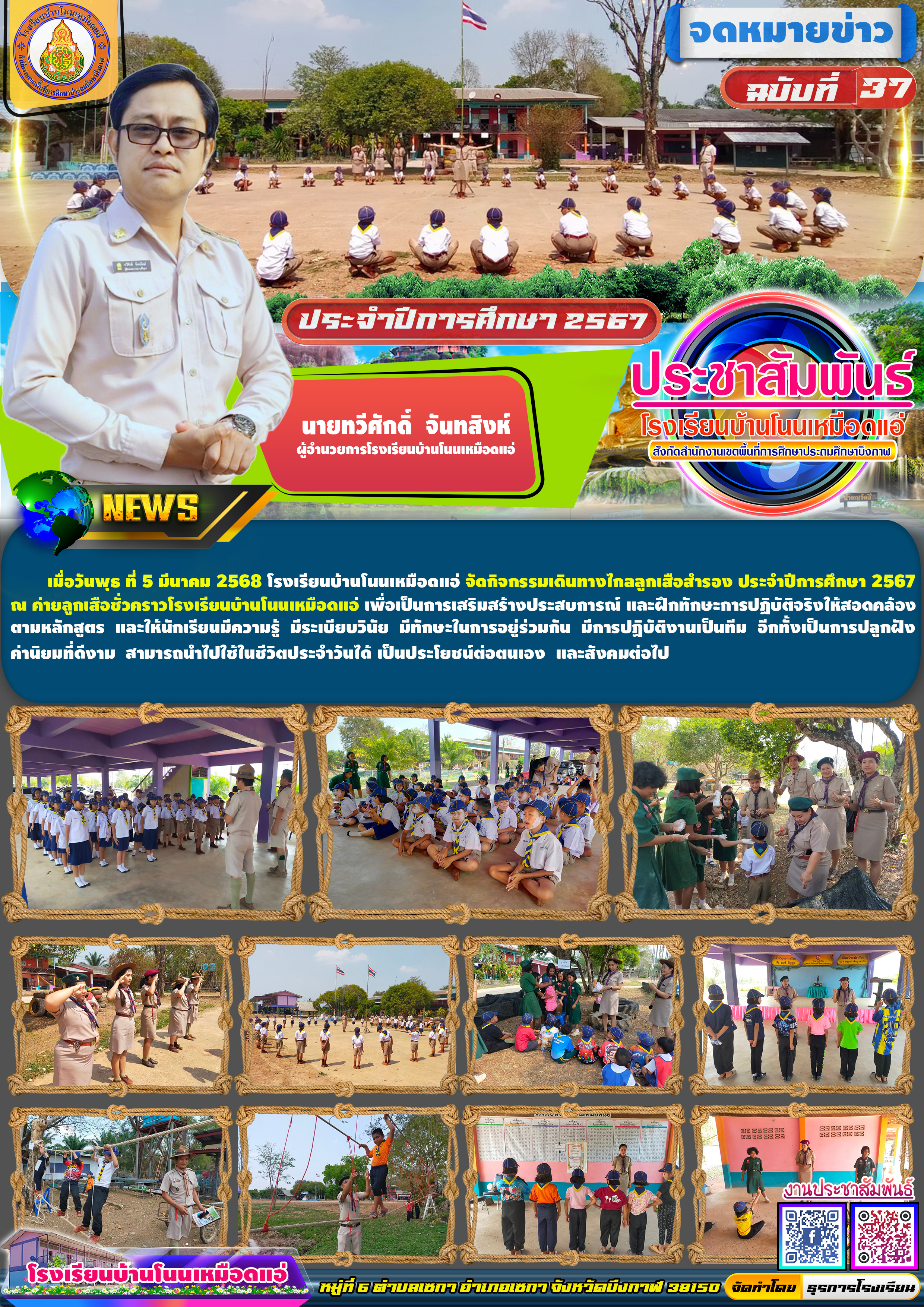 โรงเรียนบ้านโนนเหมือดแอ่ ขอประชาสัมพันธ์จดหมายข่าว ฉบับที่ 37 ปีการศึกษา 2567 กิจกรรมเดินทางไกลลูกเสือสำรอง ประจำปีการศึกษา 2567