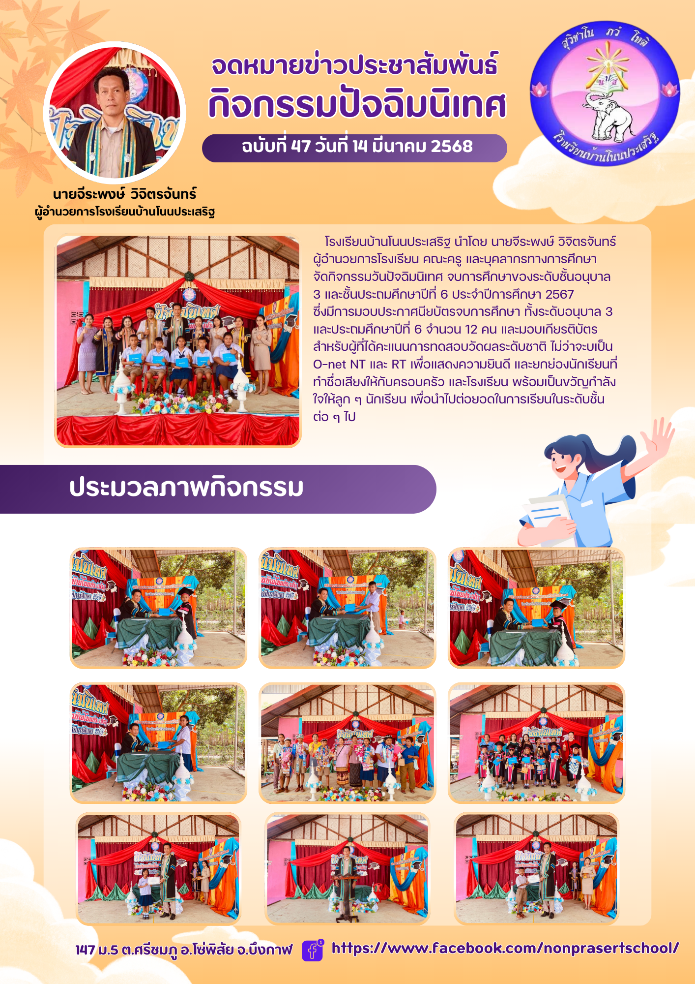 จดหมายข่าวประชาสัมพันธ์โรงเรียนบ้านโนนประเสริฐ ฉบับที่ 47 - 2568 เรื่อง กิจกรรมปัจฉิมนิเทศ ประจำปีการศึกษา 2567