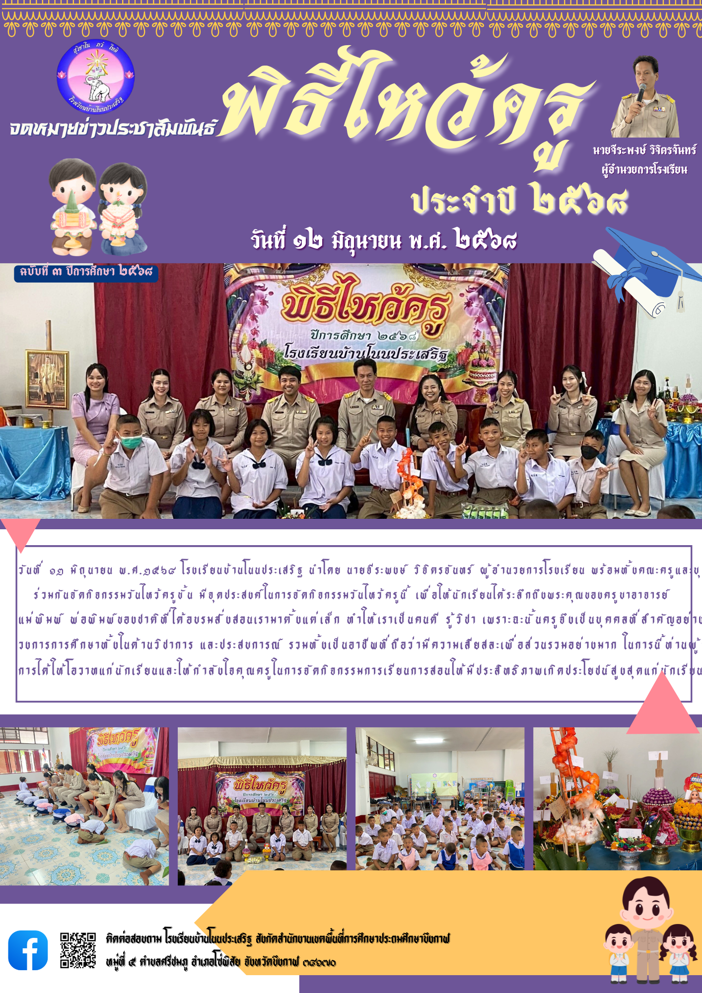 จดหมายข่าวประชาสัมพันธ์โรงเรียนบ้านโนนประเสริฐ ฉบับที่ 3 ปีการศึกษา 2568 เรื่อง พิธีไหว้ครู ประจำปีการศึกษา 2568