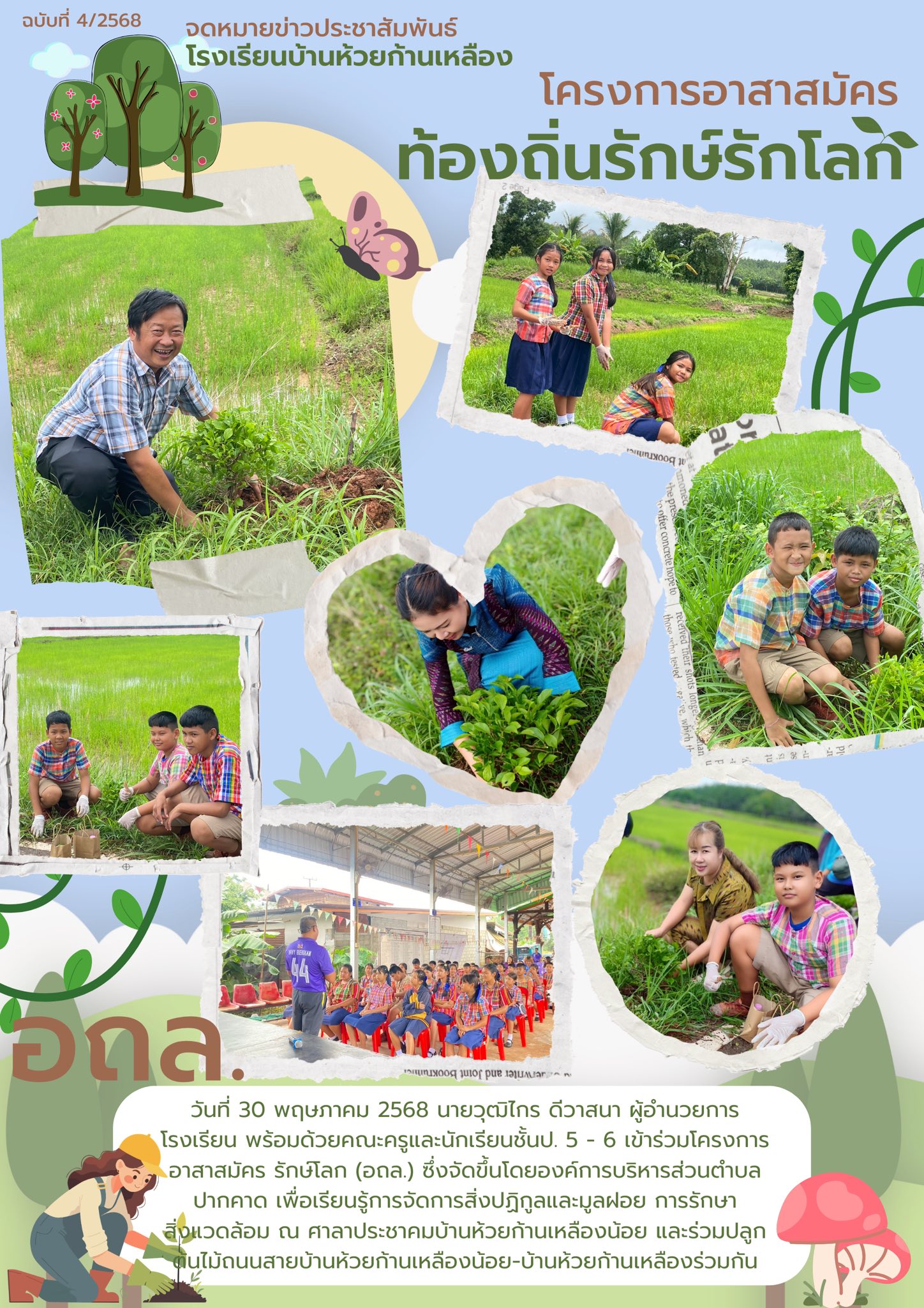 เข้าร่วมโครงการอาสาสมัคร รักษ์โลก (อถล.) ซึ่งจัดขึ้นโดยองค์การบริหารส่วนตำบลปากคาด เพื่อเรียนรู้การจัดการสิ่งปฏิกูลและมูลฝอย การรักษาสิ่งแวดล้อม