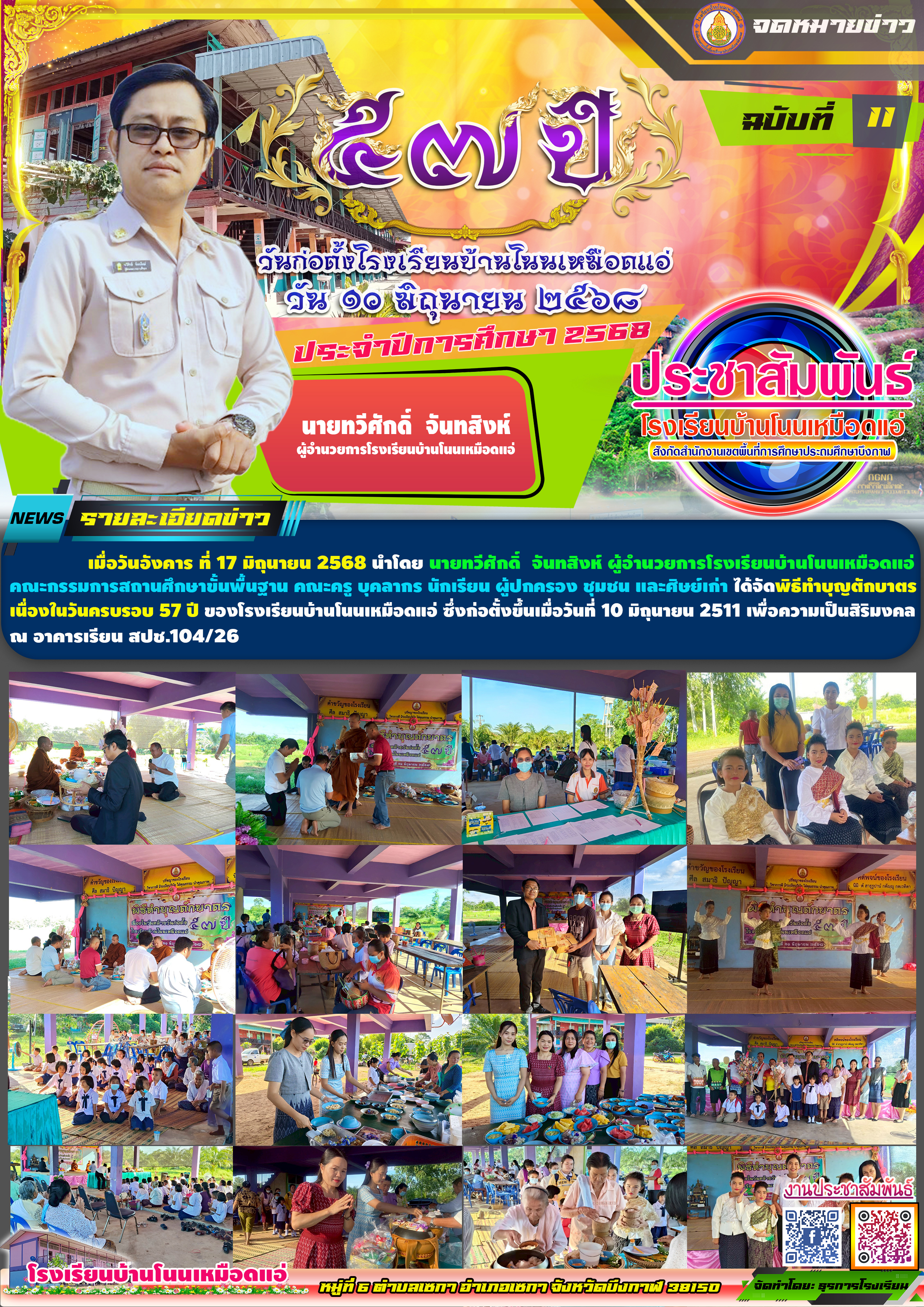 โรงเรียนบ้านโนนเหมือดแอ่ ขอประชาสัมพันธ์จดหมายข่าว ฉบับที่ 11 ปีการศึกษา 2568 พิธีทำบุญตักบาตร เนื่องในวันครบรอบ 57 ปี