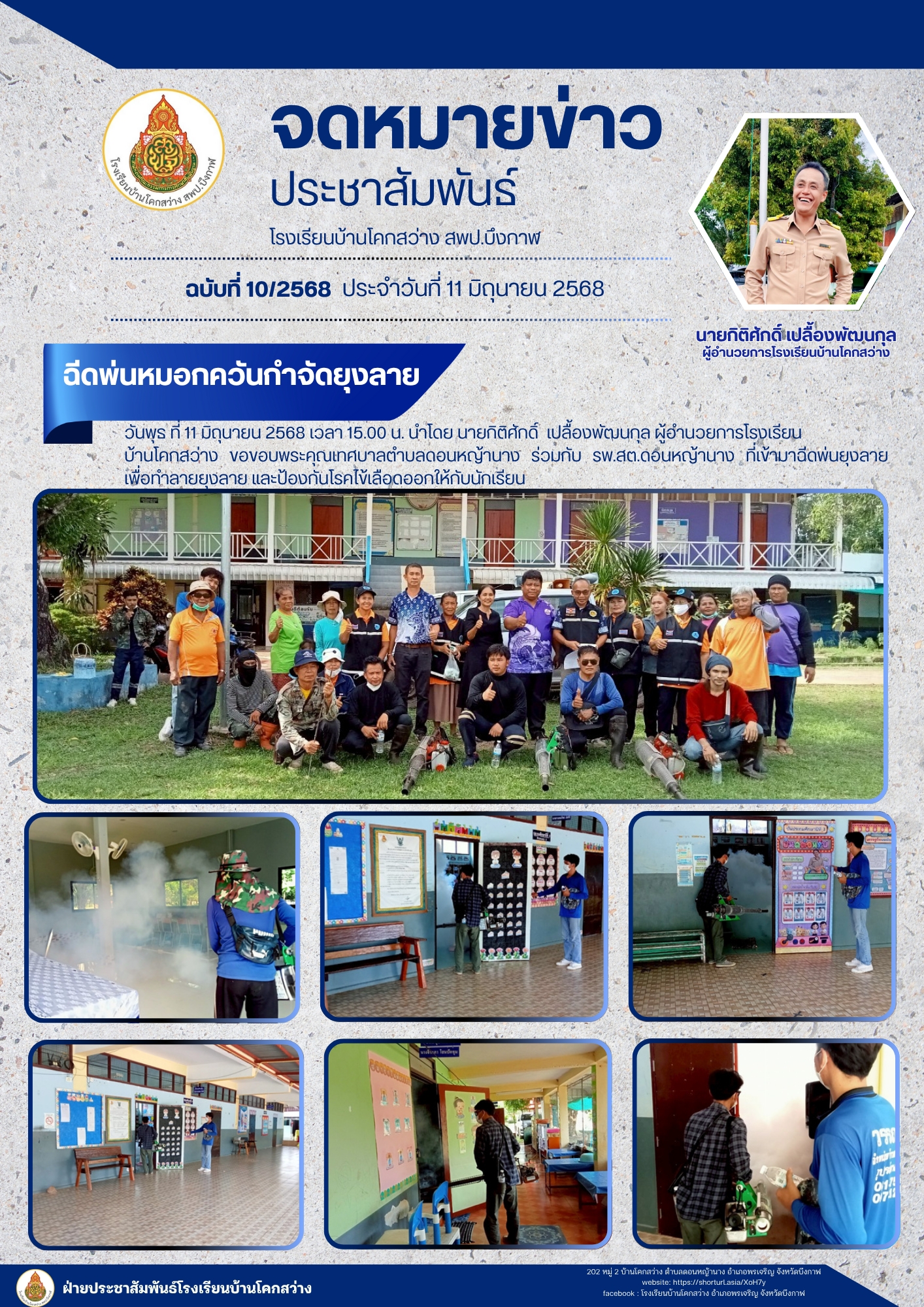 โรงเรียนบ้านโคกสว่าง ฉบับที่ 10/2568 ขอขอบคุณ ทต.ดอนหญ้านาง ร่วมกับ รพ.สต.ดอนหญ้านาง ให้ความอนุเคราะห์ฉีดพ่นยุงลาย เพื่อกำจัด ทำลาย และป้องกันโรคไข้เลือดออก