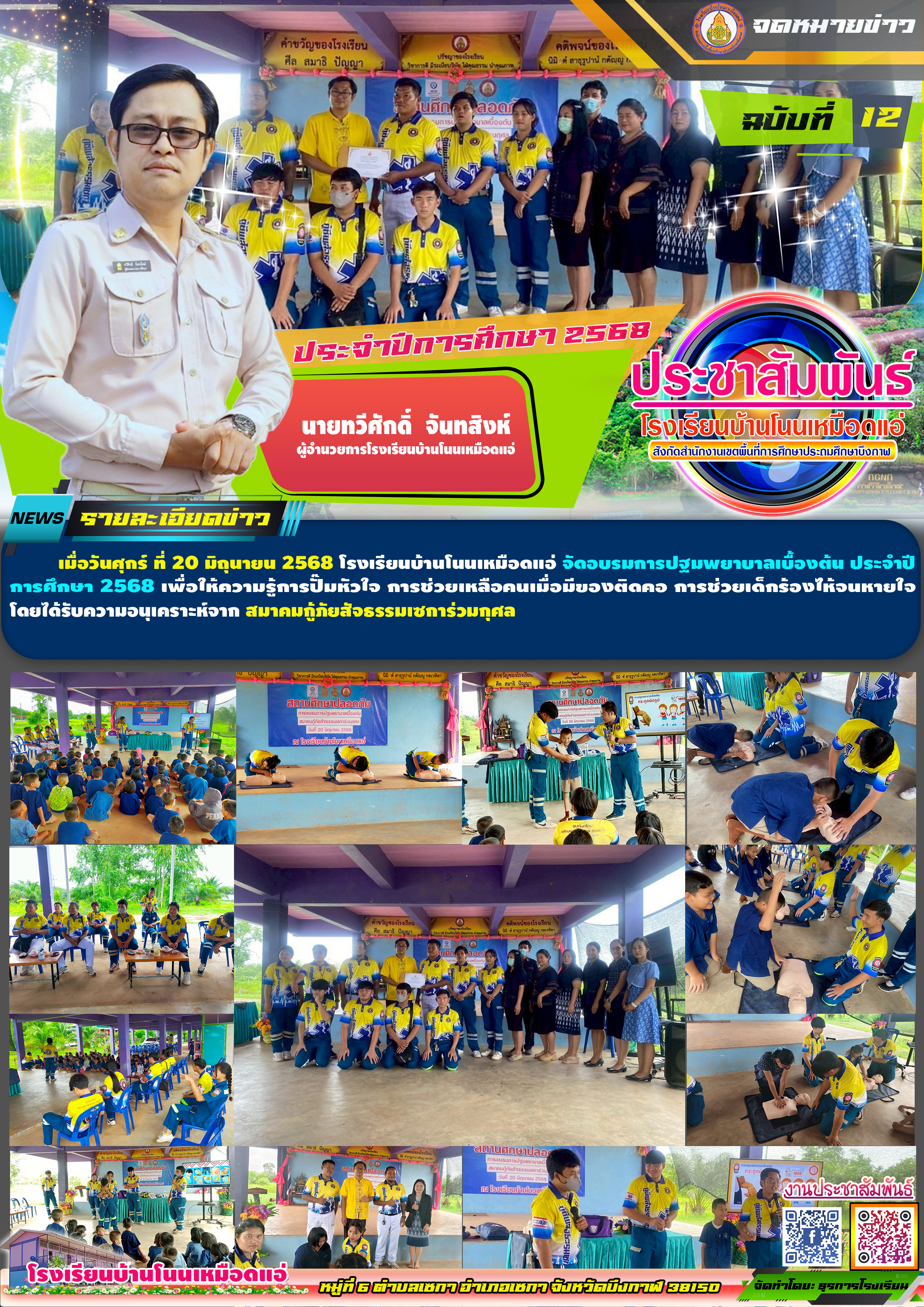 ![]() | โรงเรียนบ้านโนนเหมือดแอ่ ขอประชาสัมพันธ์จดหมายข่าว ฉบับที่ 12 ปีการศึกษา 2568 การอบรมการปฐมพยาบาลเบื้องต้น ประจำปีการศึกษา 2568(เผยแพร่เมื่อวันที่ 26 มิย 2568 09:27:02 น.) ผู้รายงาน : ธุรการโรงเรียน บ้านโนนเหมือดแอ่ |