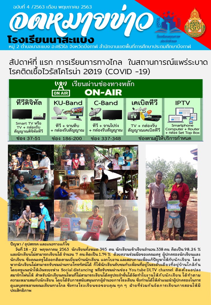 โรงเรียนบ้านนาสะแบงกับ สัปดาห์ที่ แรก การเรียนการทางไกลในสถานการณ์แพร่ระบาดโรคติดเชื้อไวรัสโคโรน่า 2019 (COVID -19)