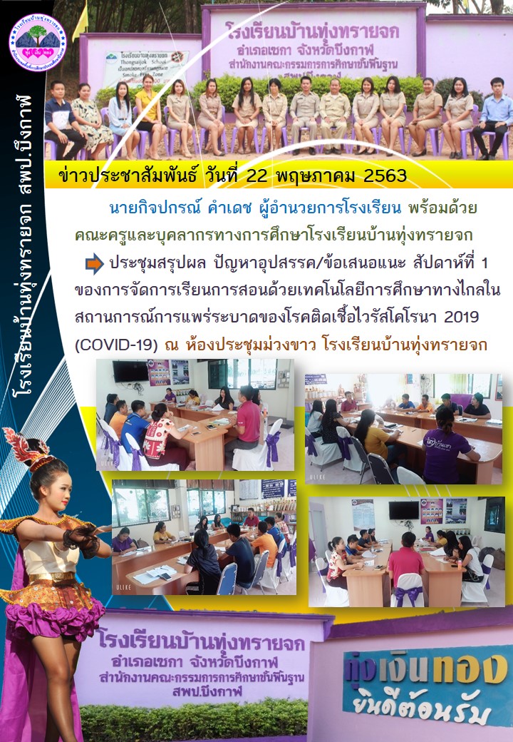 โรงเรียนบ้านทุ่งทรายจก ประชาสัมพันธ์-ประชุมสรุปผลการเรียนการทางไกลในสถานการณ์แพร่ระบาดโรคติดเชื้อไวรัสโคโรน่า 2019 (COVID -19) สัปดาห์ที่ 1 วันที่ 22 พฤษภาคม 2563