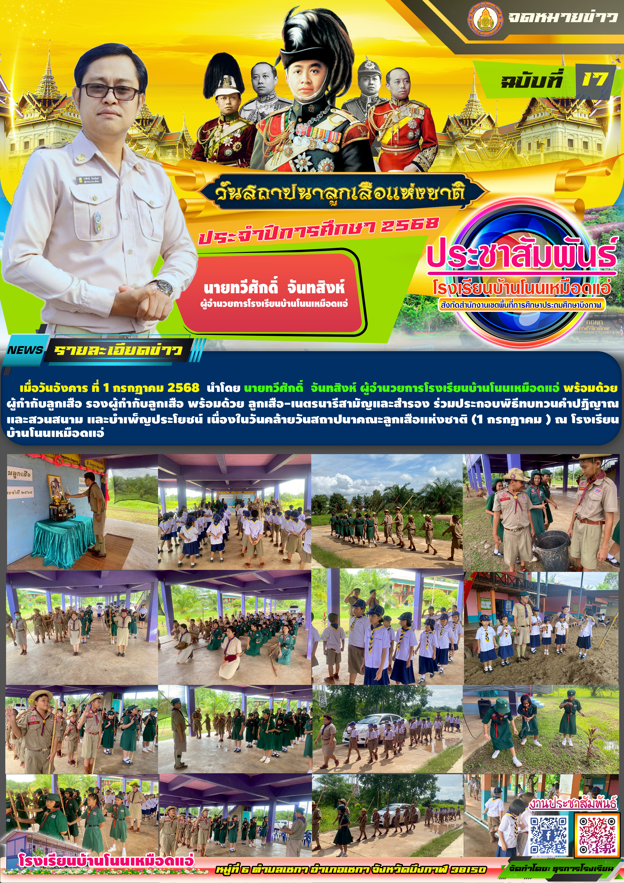 โรงเรียนบ้านโนนเหมือดแอ่ ขอประชาสัมพันธ์จดหมายข่าว ฉบับที่ 17 ปีการศึกษา 2568 วันคล้ายวันสถาปนาคณะลูกเสือแห่งชาติ