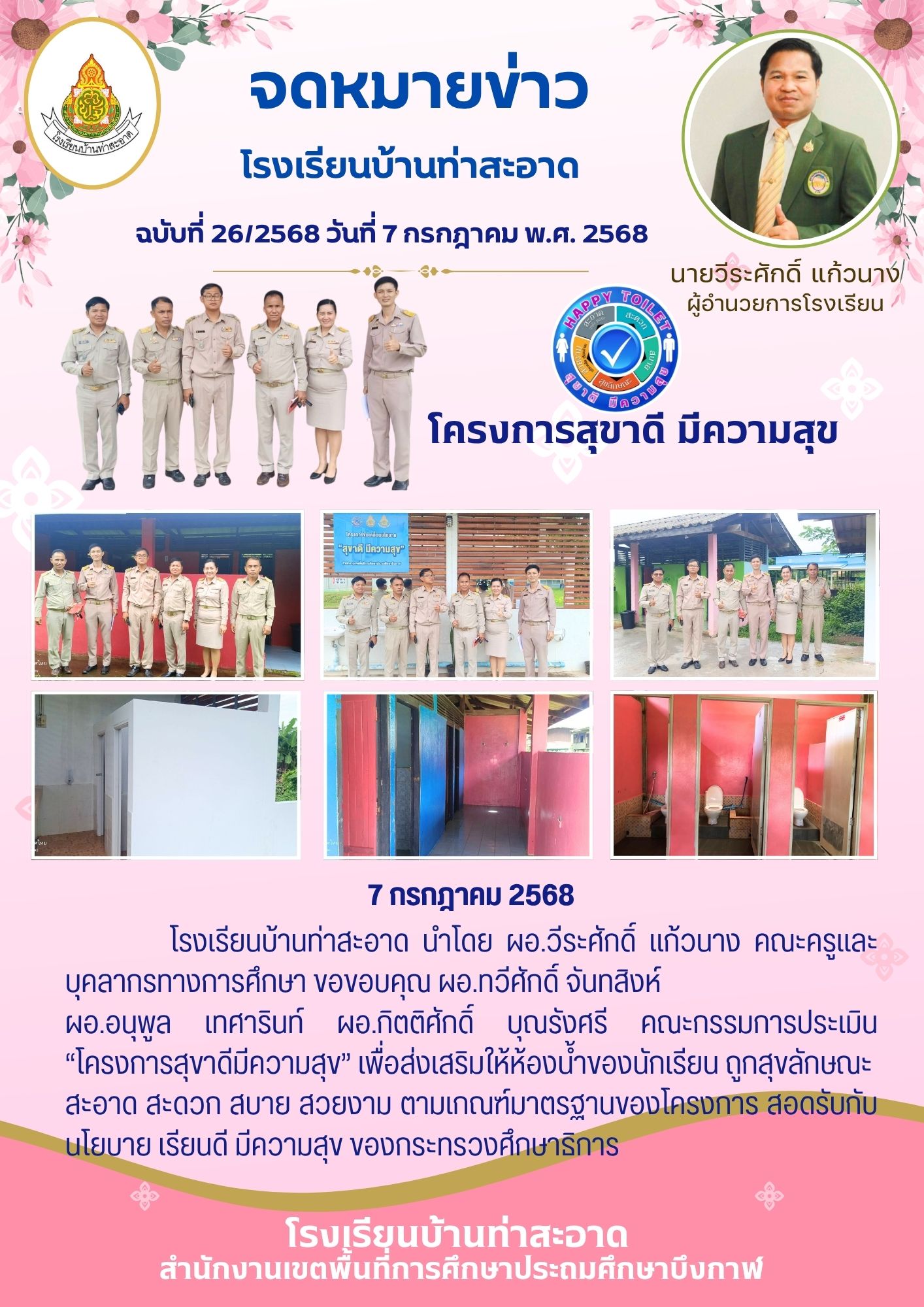 โรงเรียนบ้านท่าสะอาด กลุ่มโรงเรียนท่ากกแดงท่าสะอาด รับการประเมิน "โครงการสุขาดี มีความสุข"